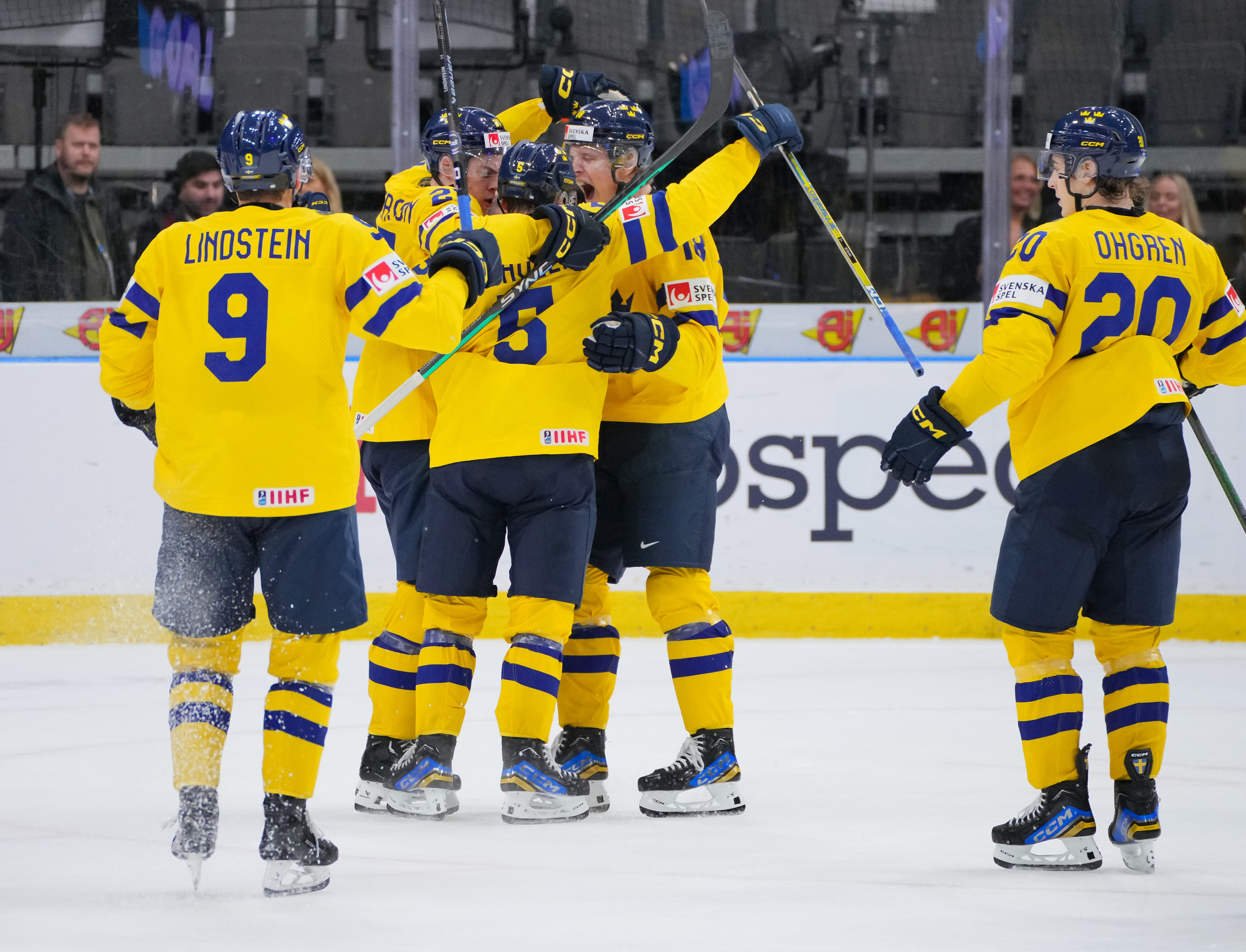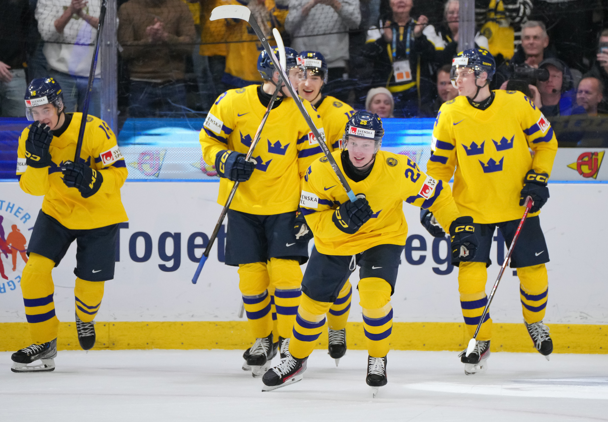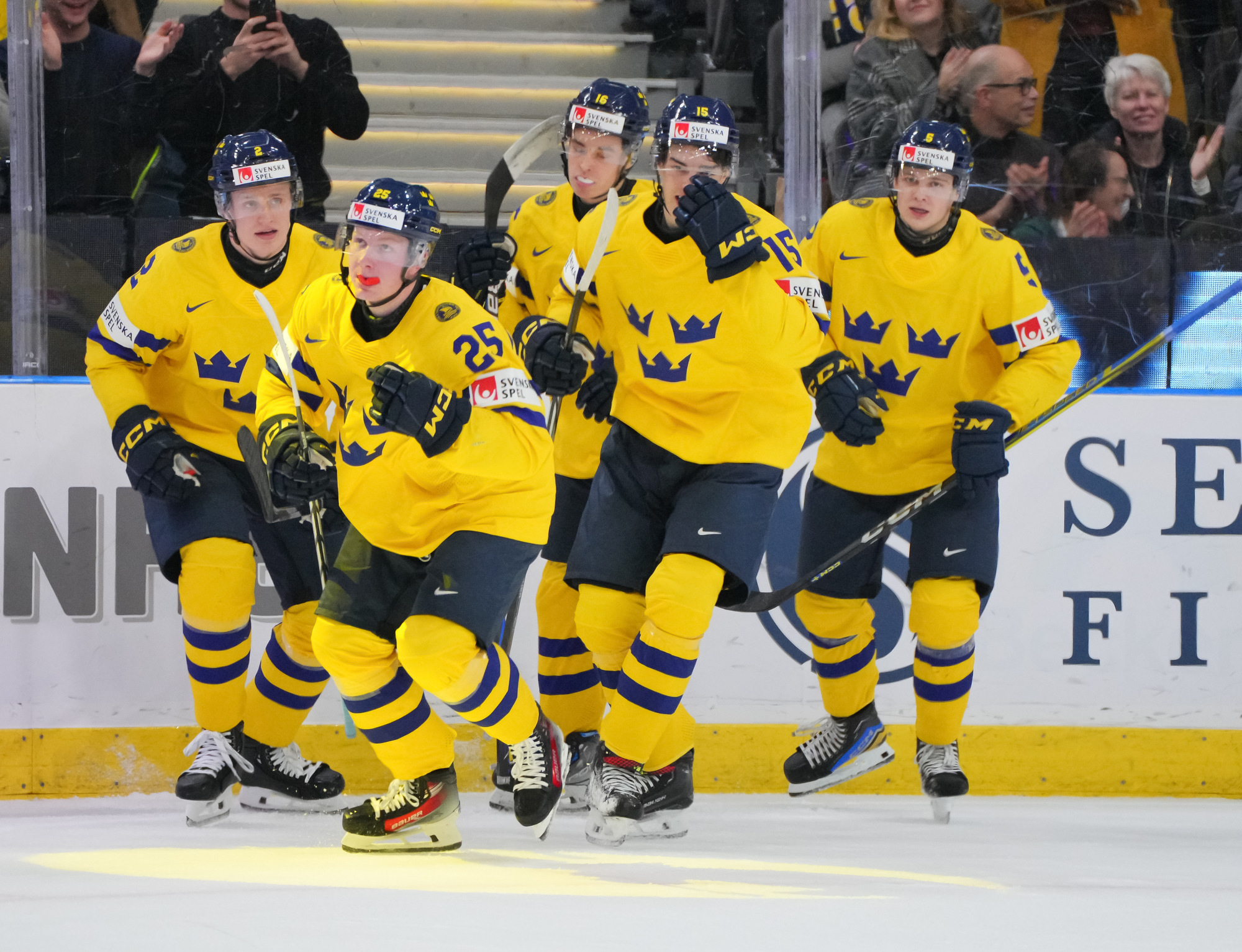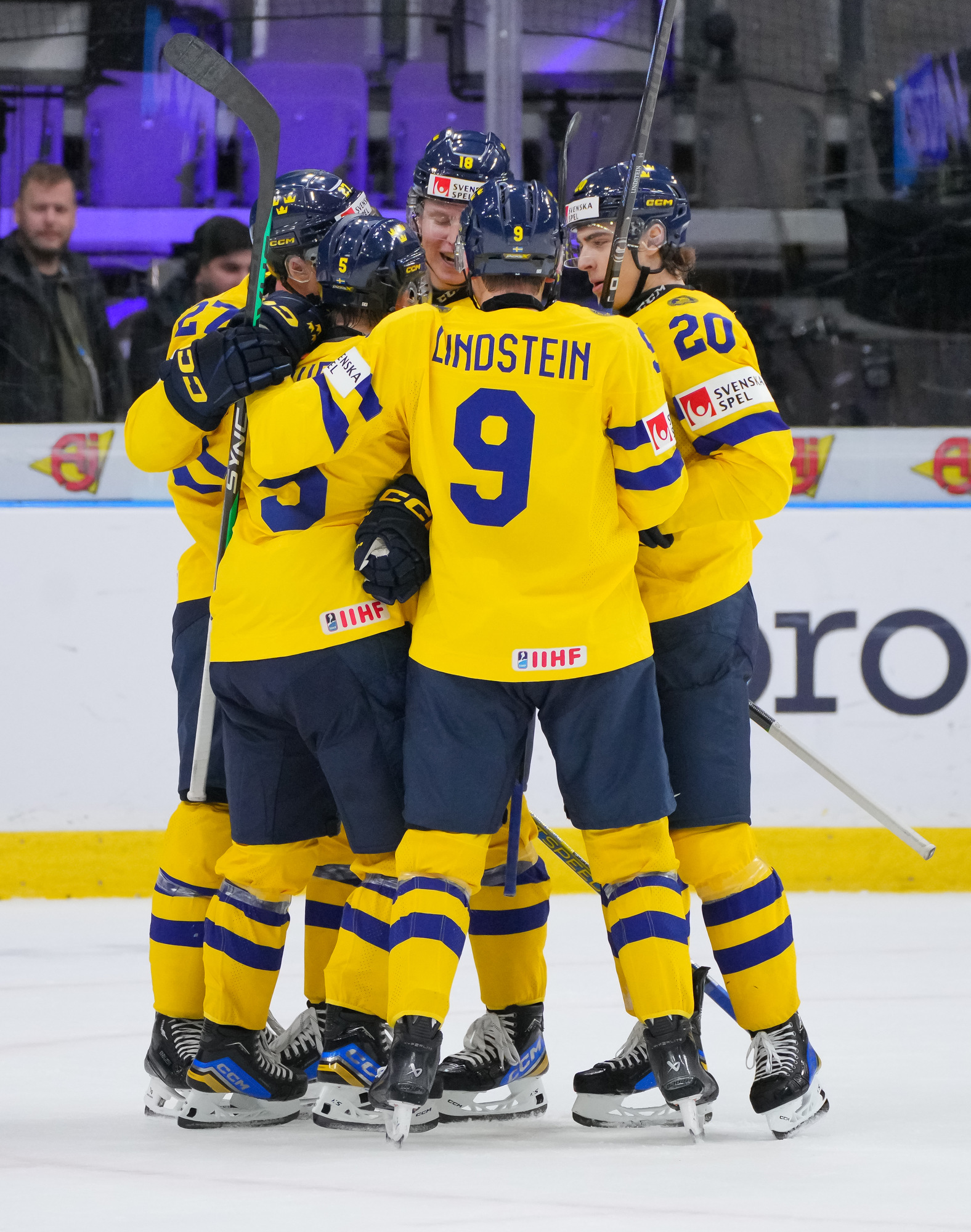 Spelet var jämnt från start men efter utvisningar från båda lagen ett par minuter in, var det Sverige som skulle få momentum. De fick en farlig målchans tidigt när Noah Östlund skickade iväg ett skott som tog i stolpen, och under fyra-mot-fyra-spel hade Otto Stenberg ett friläge som Bittner sedan satte stopp för, som var sensationell i den första perioden.