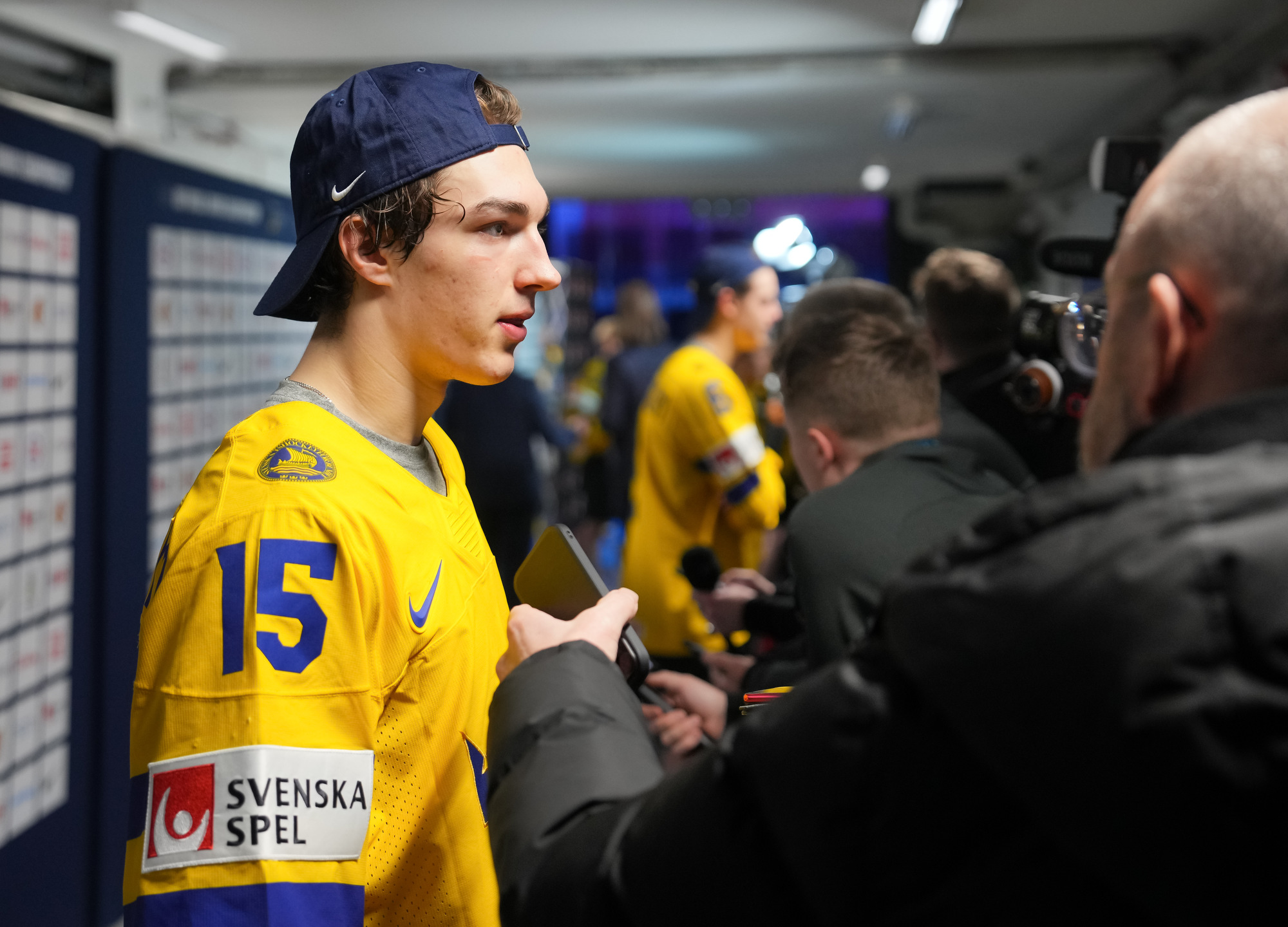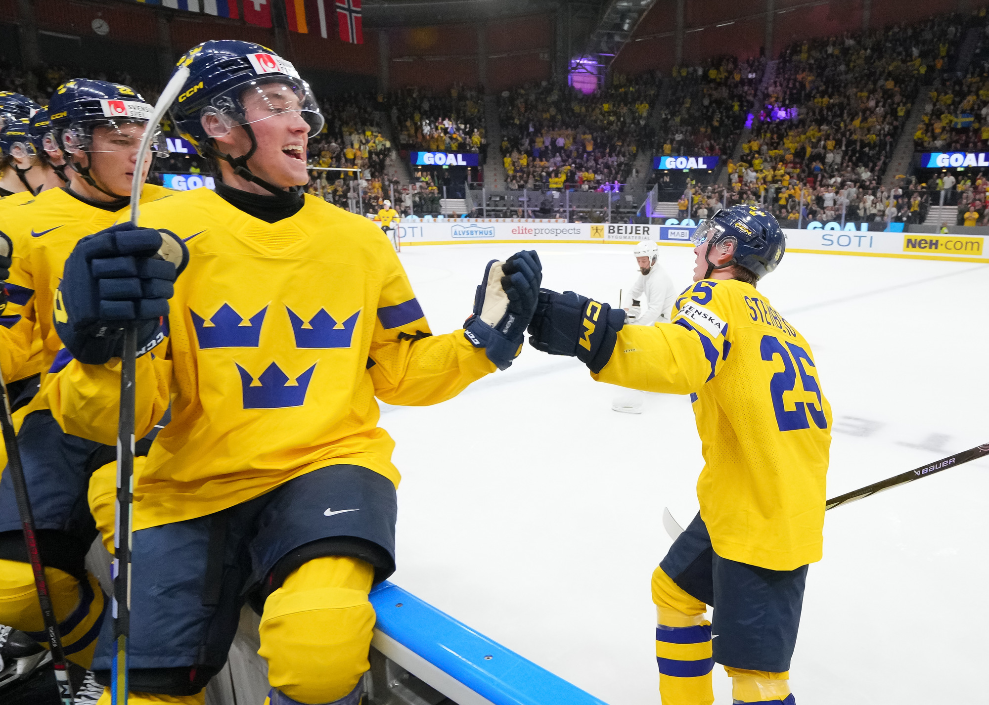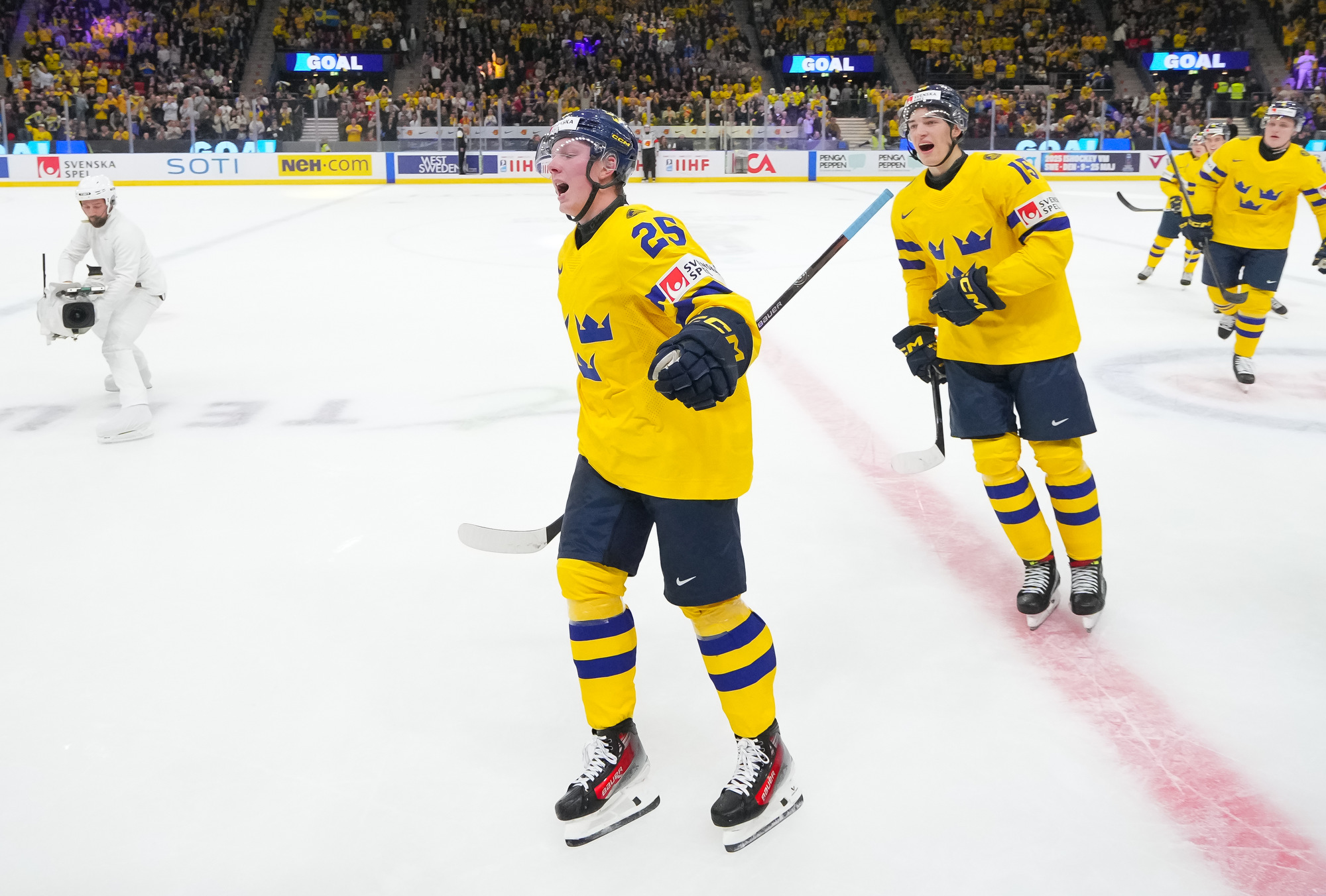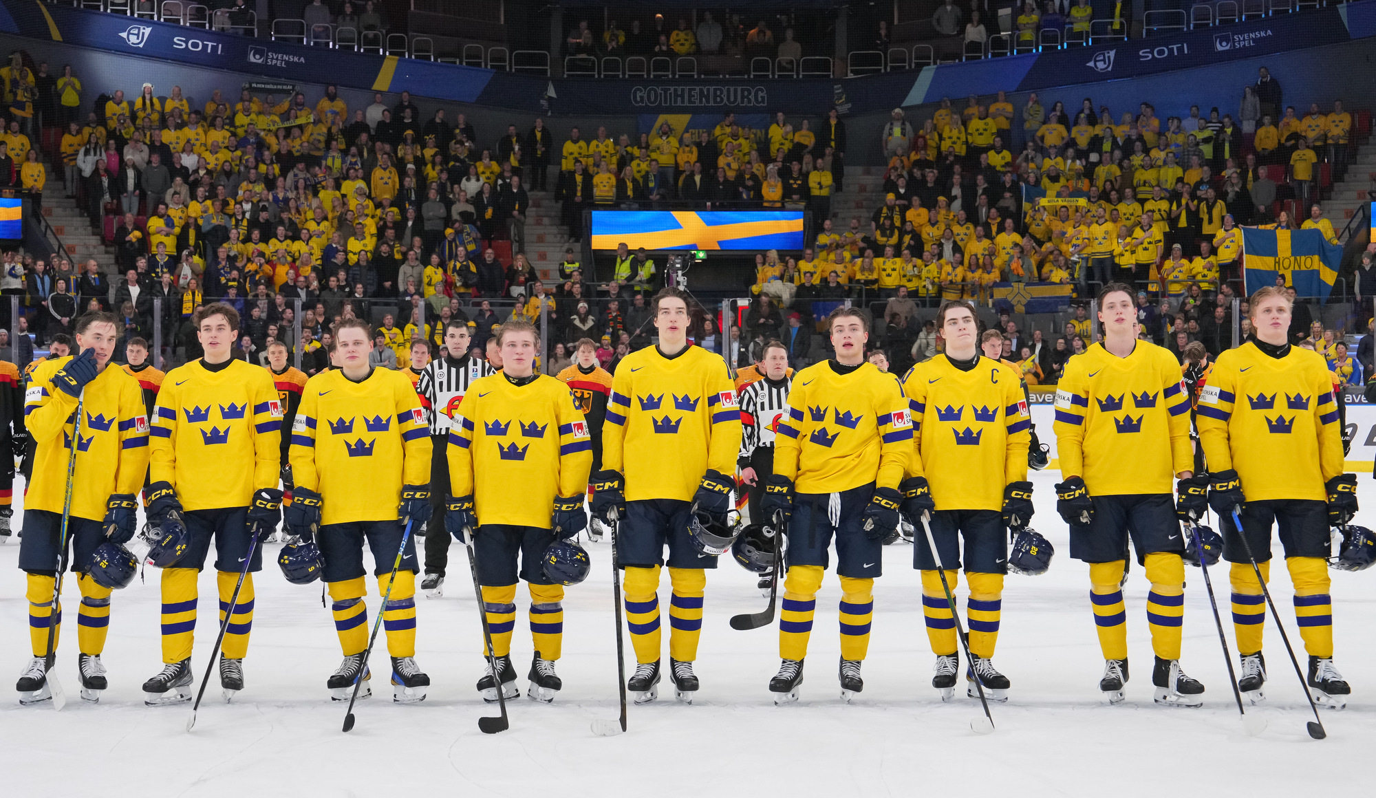 Spelet var jämnt från start men efter utvisningar från båda lagen ett par minuter in, var det Sverige som skulle få momentum. De fick en farlig målchans tidigt när Noah Östlund skickade iväg ett skott som tog i stolpen, och under fyra-mot-fyra-spel hade Otto Stenberg ett friläge som Bittner sedan satte stopp för, som var sensationell i den första perioden.