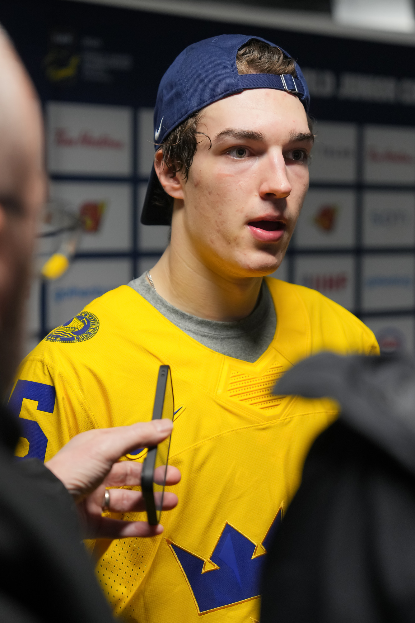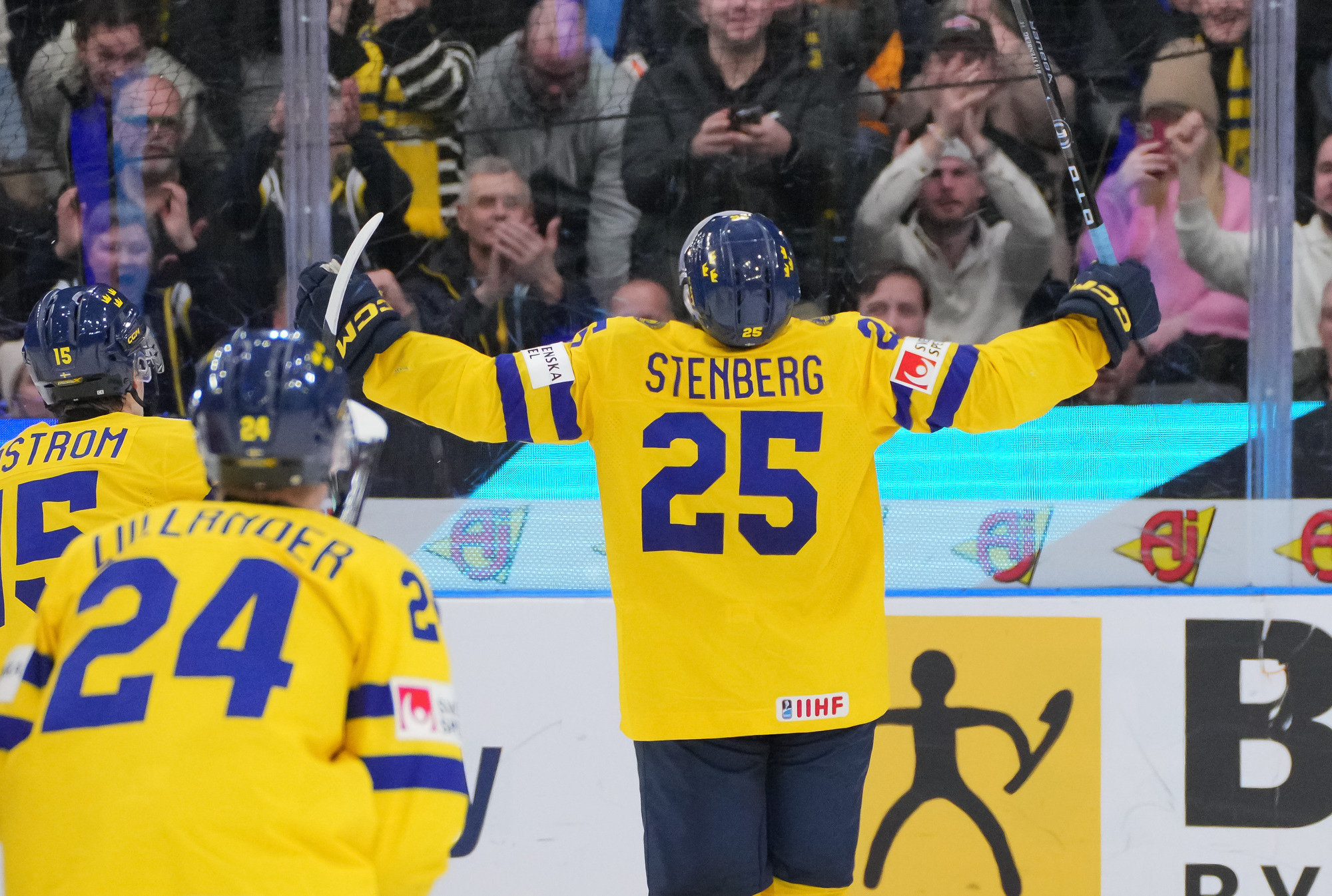 Stenberg, som draftats i förstarundan av St. Louis förra sommaren fullbordade sitt hattrick tre minuter senare när han sköt in en löst liggande puck efter en tids presspel. Östlund gjorde 5–0 vid 14:33 under ett ytterligare läge.