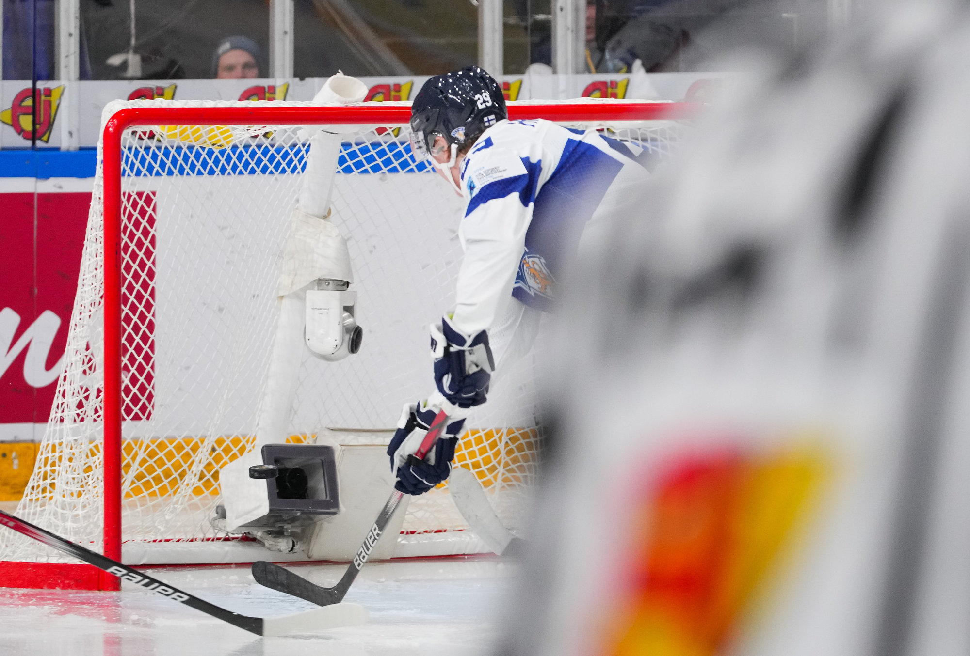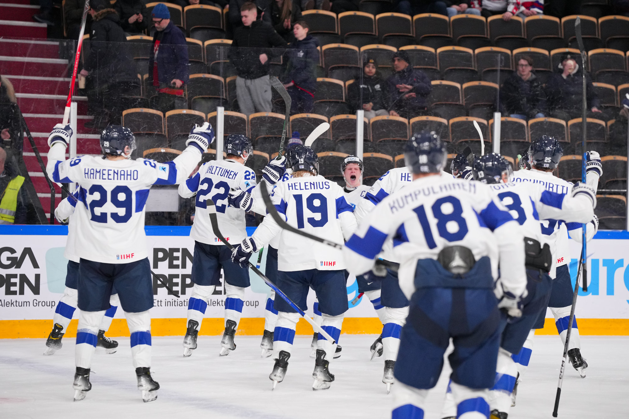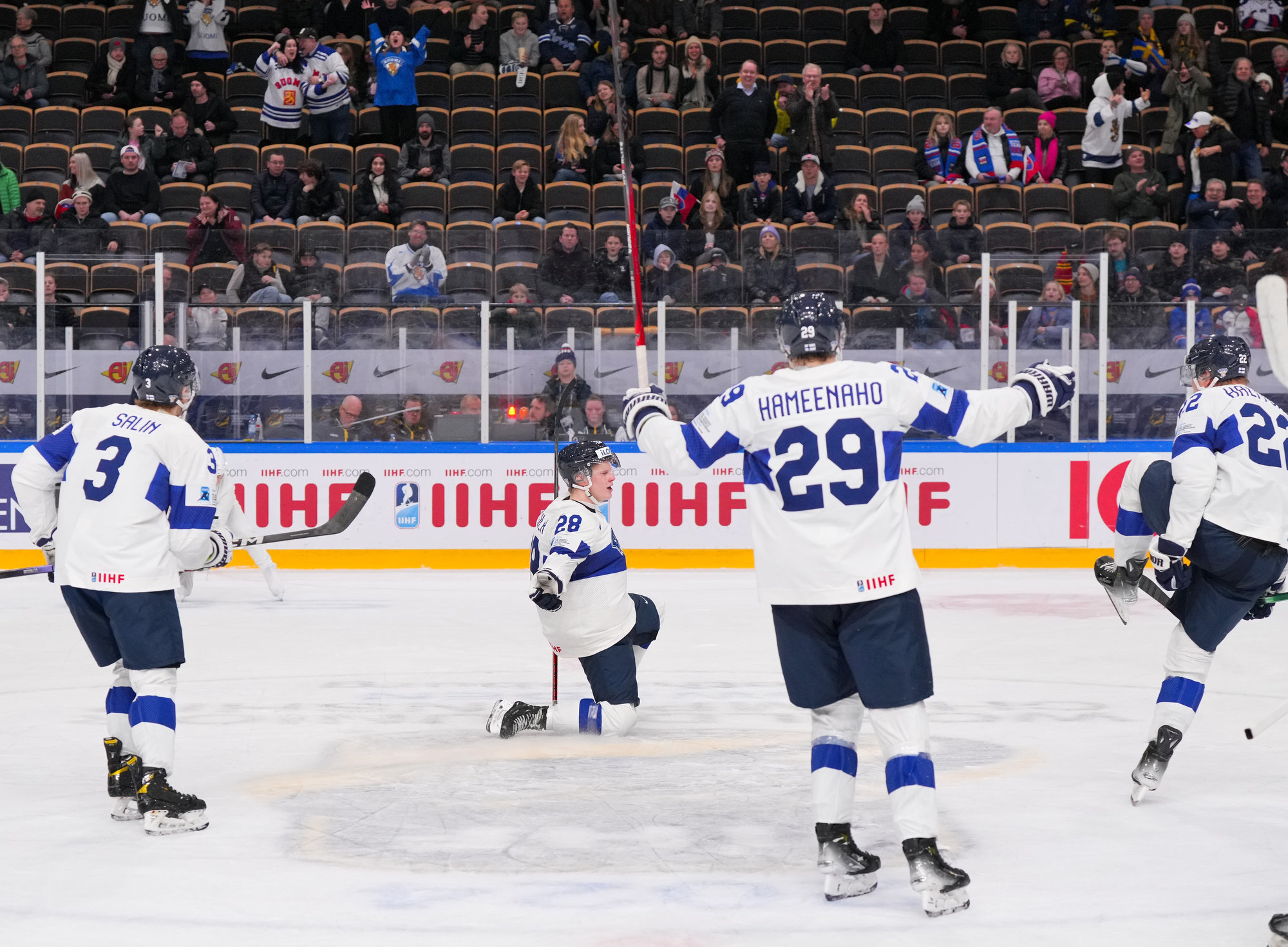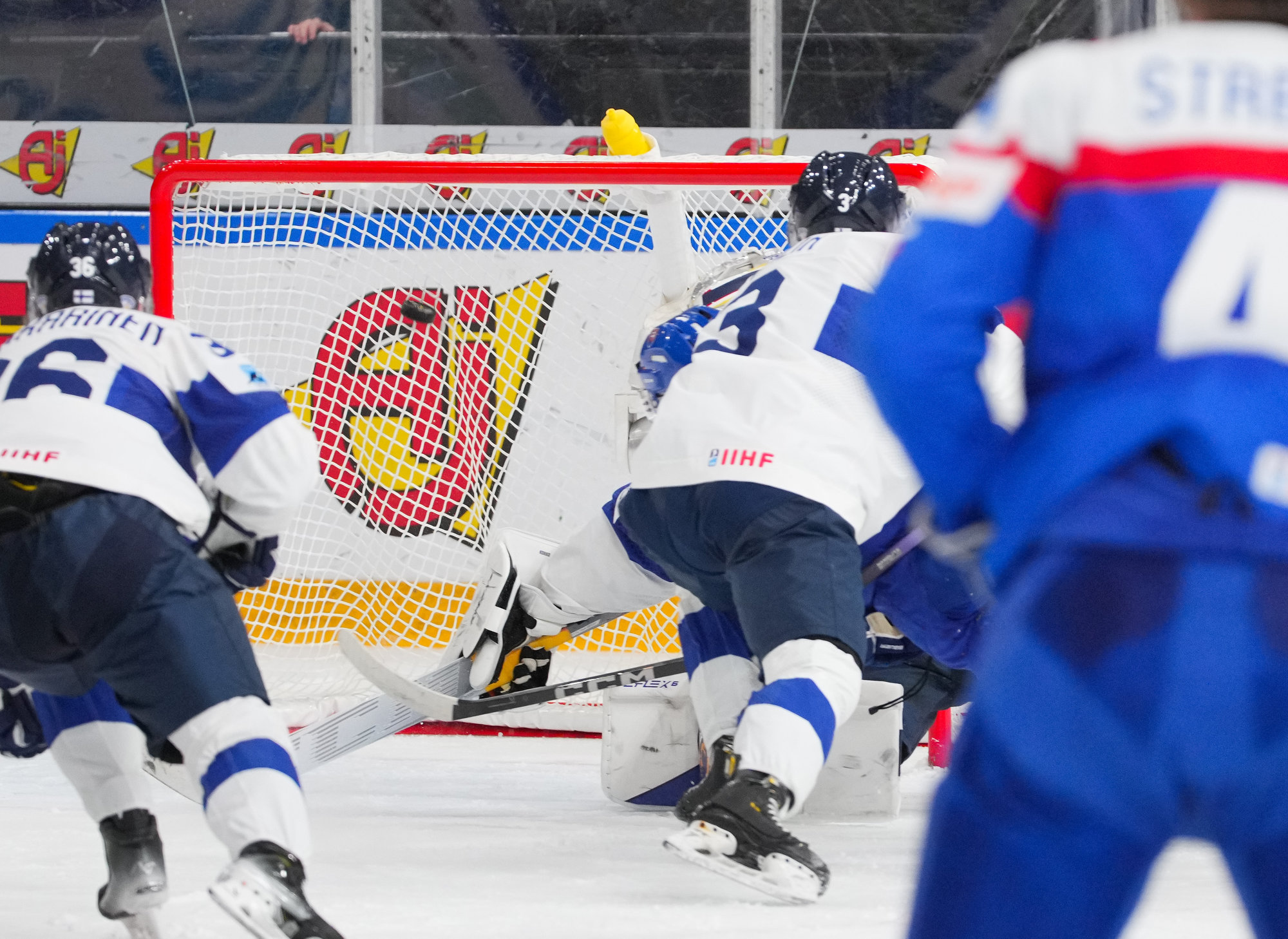 I den tredje perioden skulle en aggressiv finsk forecheck löna sig vid 0:36. Lassila grävde ut pucken bakom målet och skickade den till Hämeenaho framför nät som satte in pucken på backhand för att ge sitt lag en 2–1-ledning.
