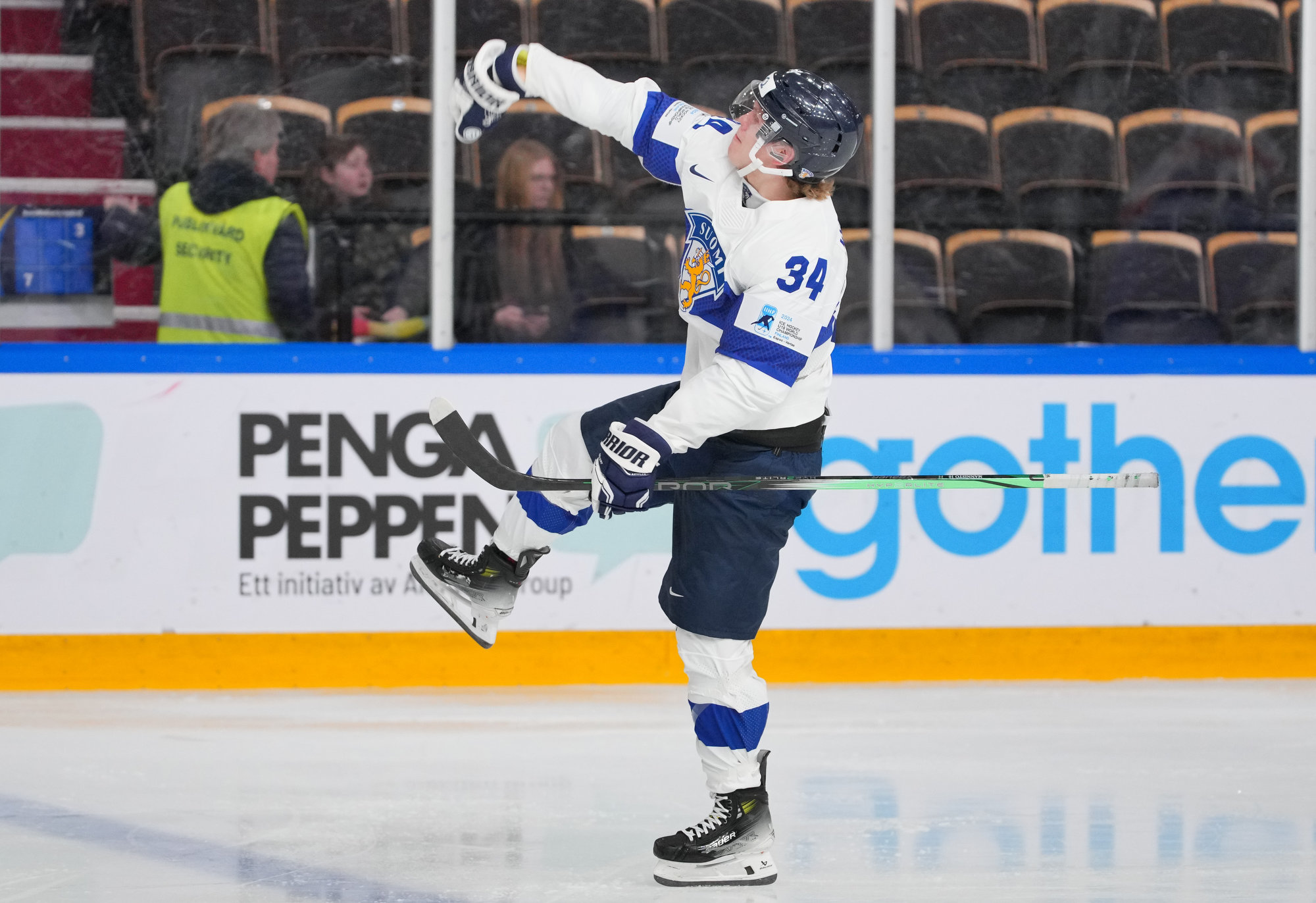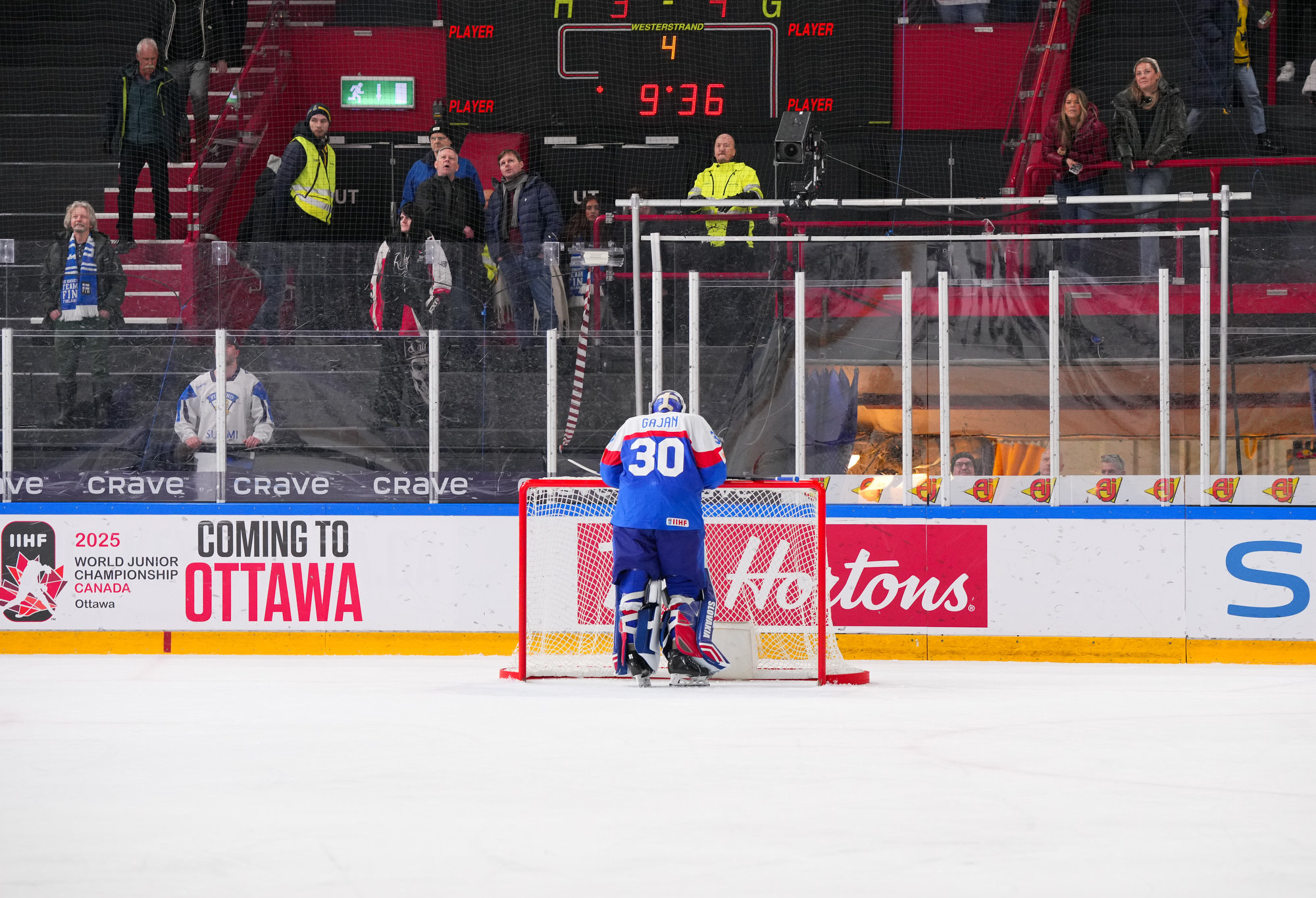 I en jämn första period lyckades Gajan hålla tätt mot Jani Nyman som vunnit pucken vid den finska blålinjen och kom rusande in under ett friläge. Nyman, som draftades i den andrarundan av Seattle Kraken, nätade den avgörande straffen i 5–4-vinsten mot ärkerivalen Sverige på nyårsafton.