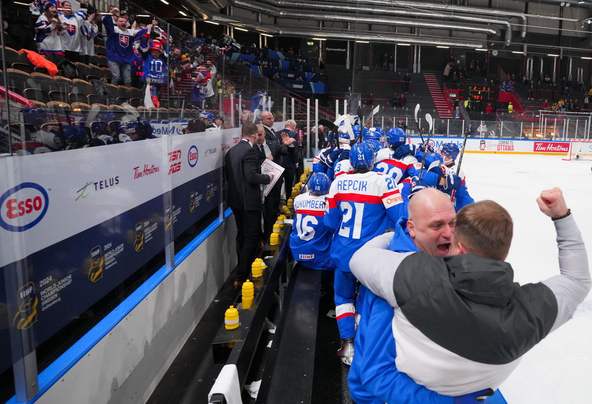 Slovakerna vägrade att ge upp och bytte ut sin burväktare mot en extra utespelare. Med 0:44 kvar av ordinarie tid, kunde Mesar kvittera med ett skott rakt i det övre krysset från den vänstra tekningscirkeln.