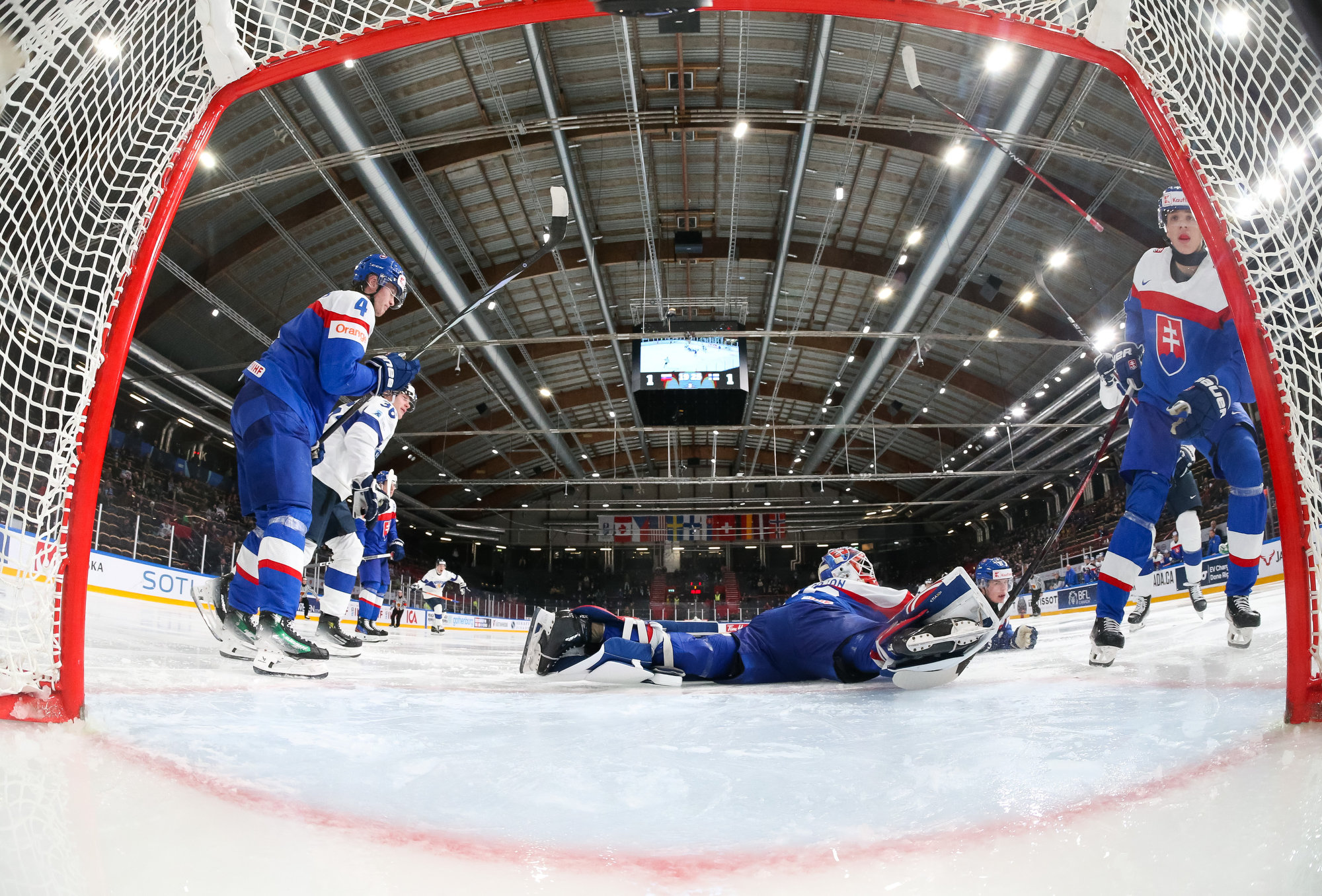Slovakerna tog ledningen med 1–0 precis innan slutsignalen i den första perioden. Detta då Sykora fick in en retur från Mesars pass efter en tekningsvinst i den finska zonen. Videogranskningen visade att pucken korsat linjen med 0.2 sekunder kvar på klockan och Fenes spelare var överlyckliga. Det var den slovakiske kaptenens första mål i denna JVM-turnering.