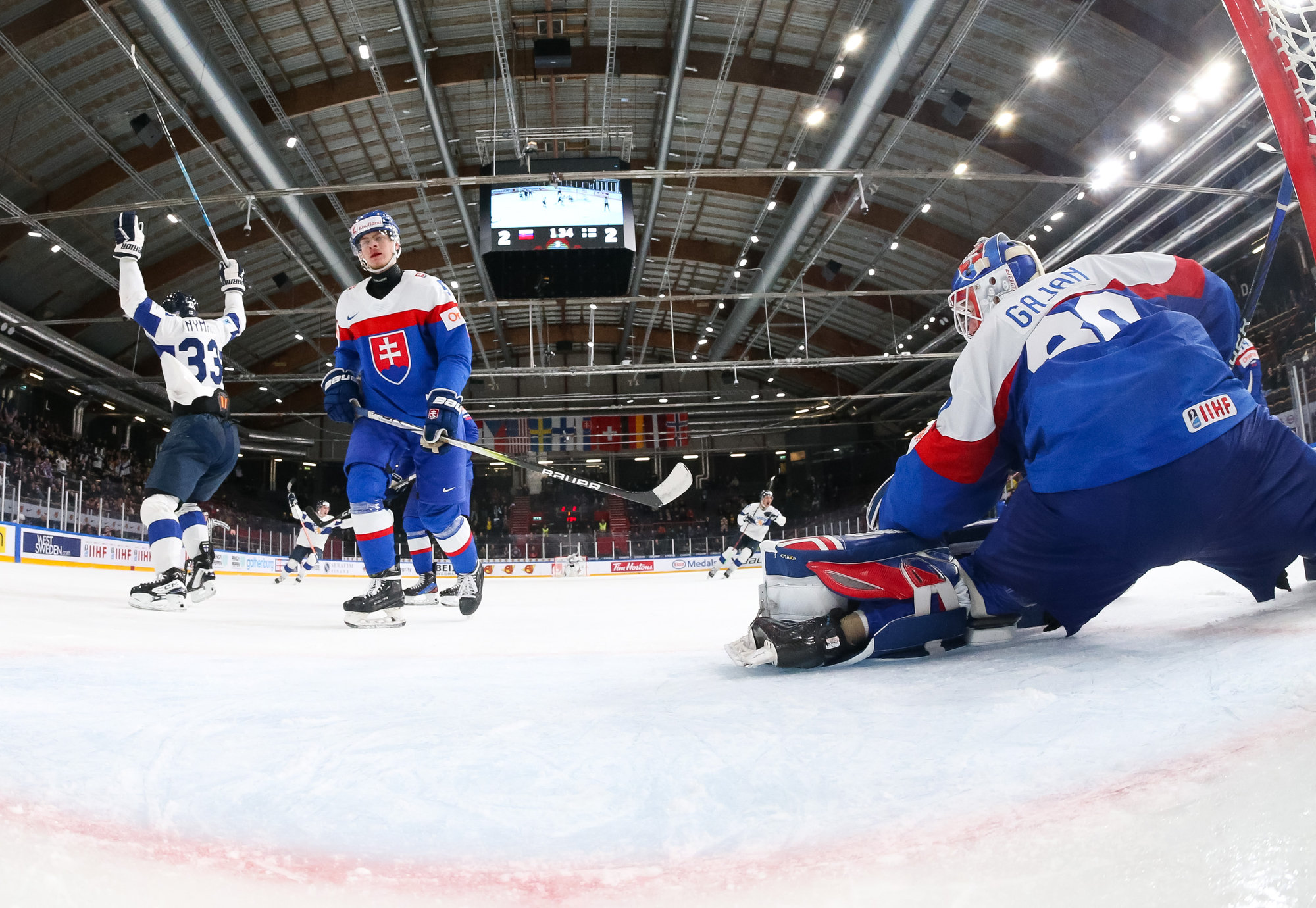 Slutminuterna av den ordinarie matchtiden blev händelserik. Finland gjorde 3–2 med bara 1:34 kvar, och Slovakien svarade genom att kvittera i den sista minuten.
