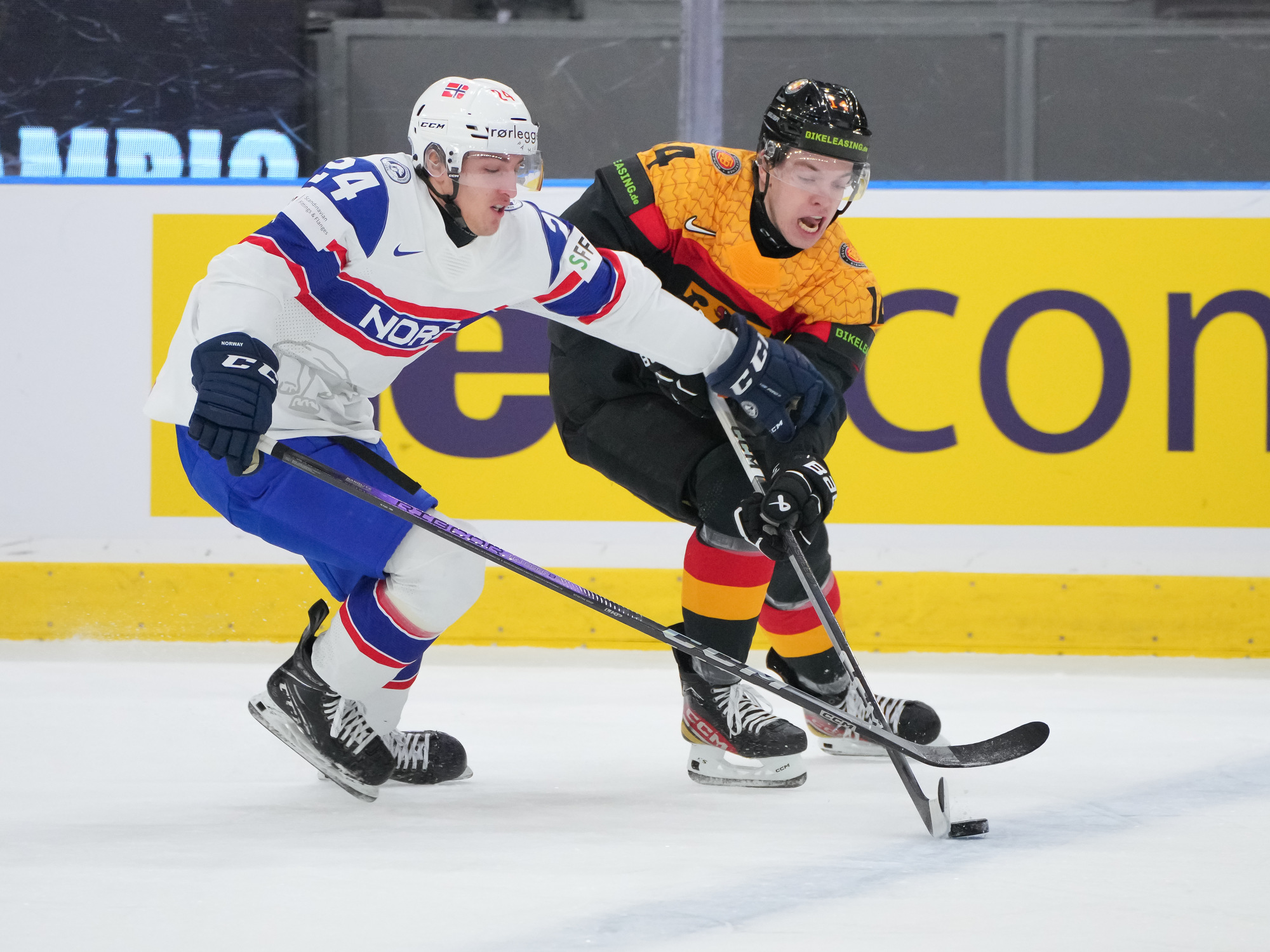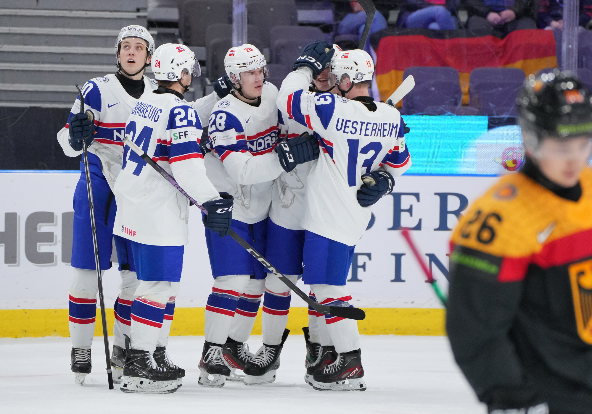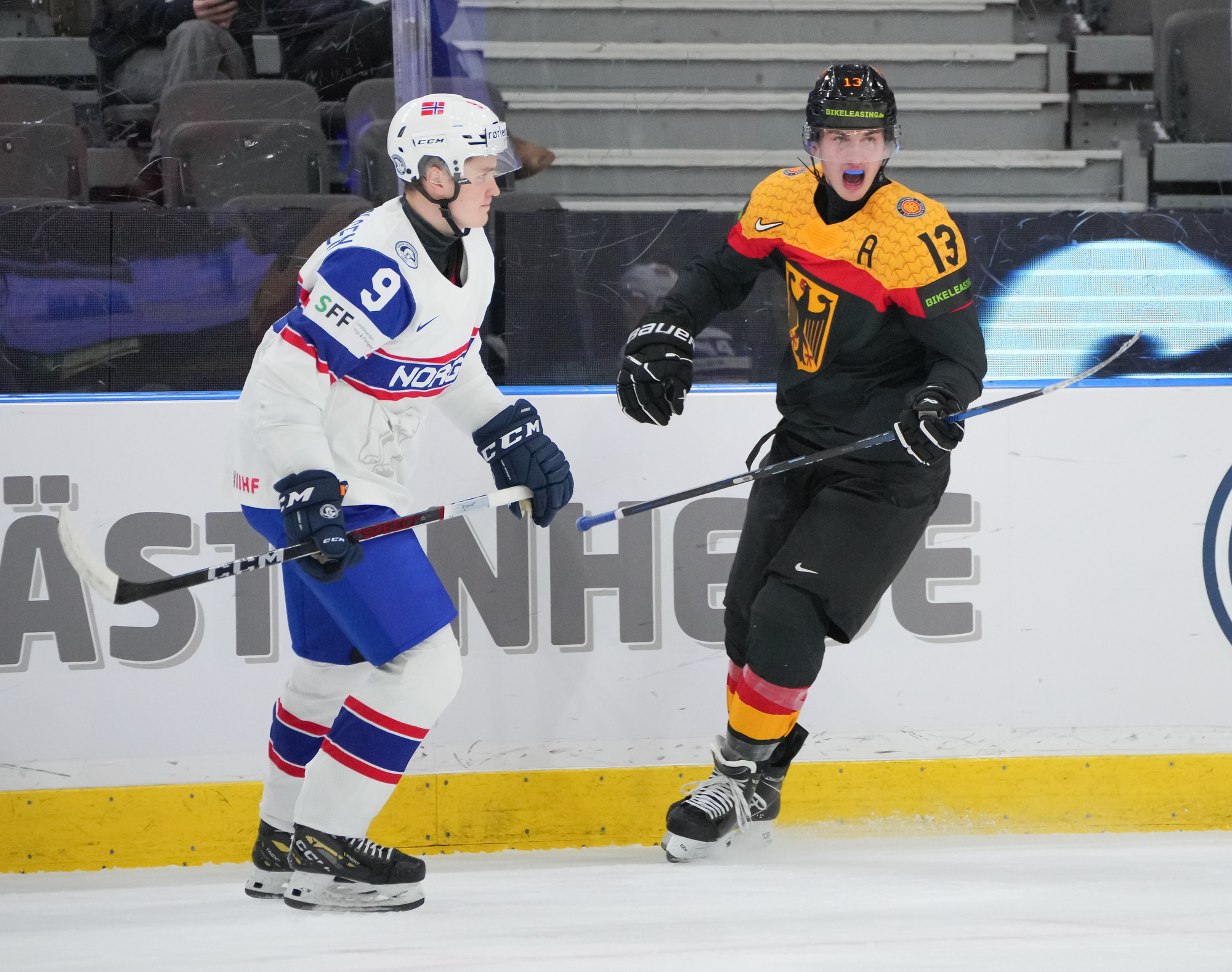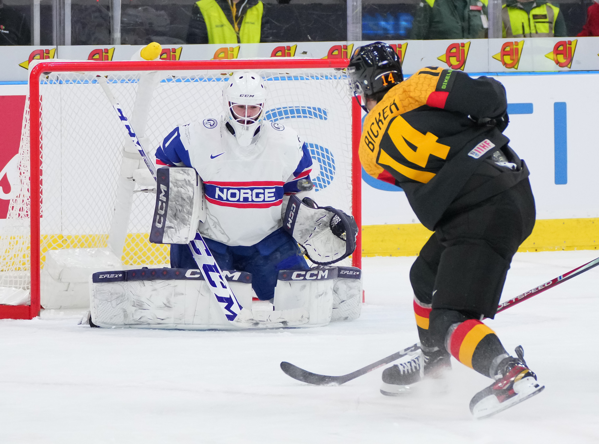 Norge spelade däremot ett bra försvarsspel och kunde kvittera efter en snabb spelsekvens av Noah Steen bakom Tysklands målbur. Han lade beslag på en lös puck och petade in den bakvägen innan Matthias Bittner kunde förflytta sig till den andra stolpen.