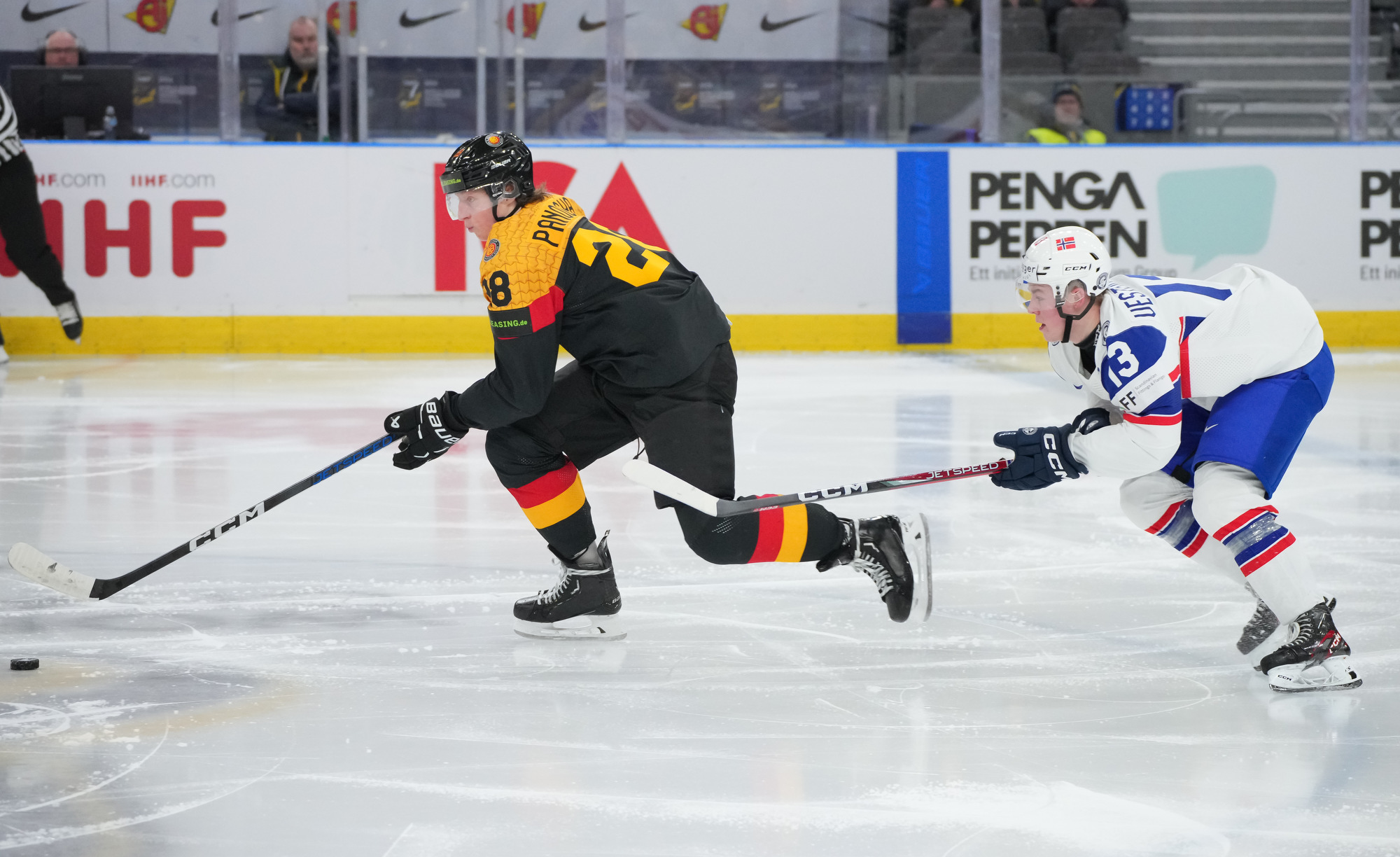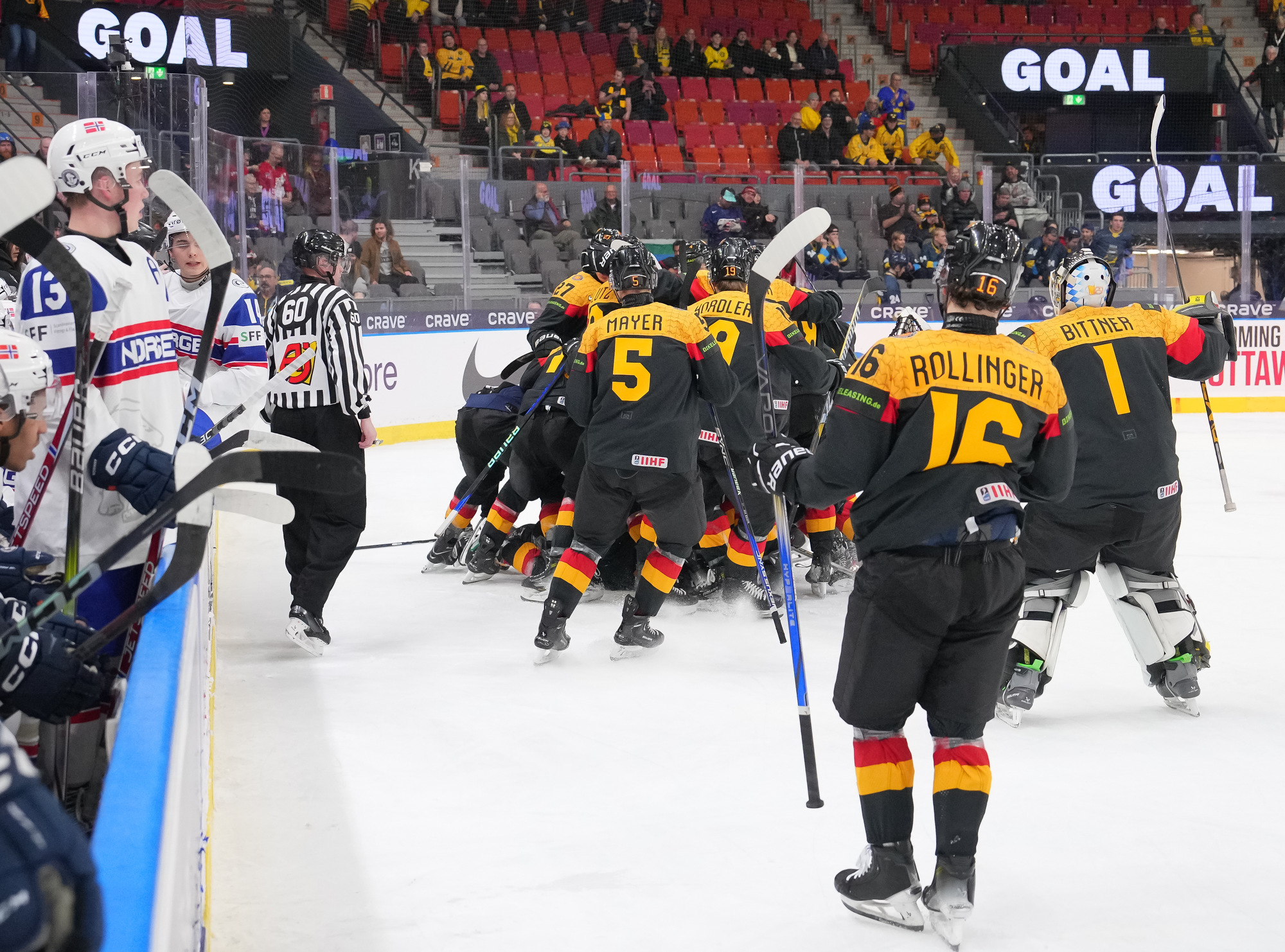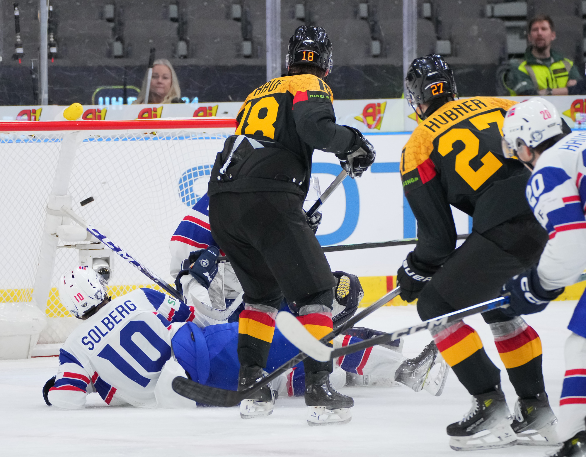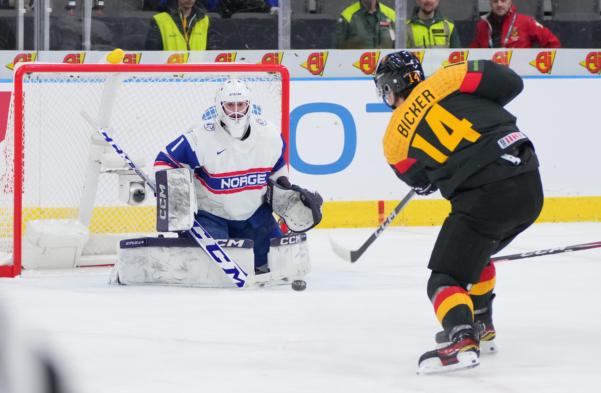 Norge spelade däremot ett bra försvarsspel och kunde kvittera efter en snabb spelsekvens av Noah Steen bakom Tysklands målbur. Han lade beslag på en lös puck och petade in den bakvägen innan Matthias Bittner kunde förflytta sig till den andra stolpen.