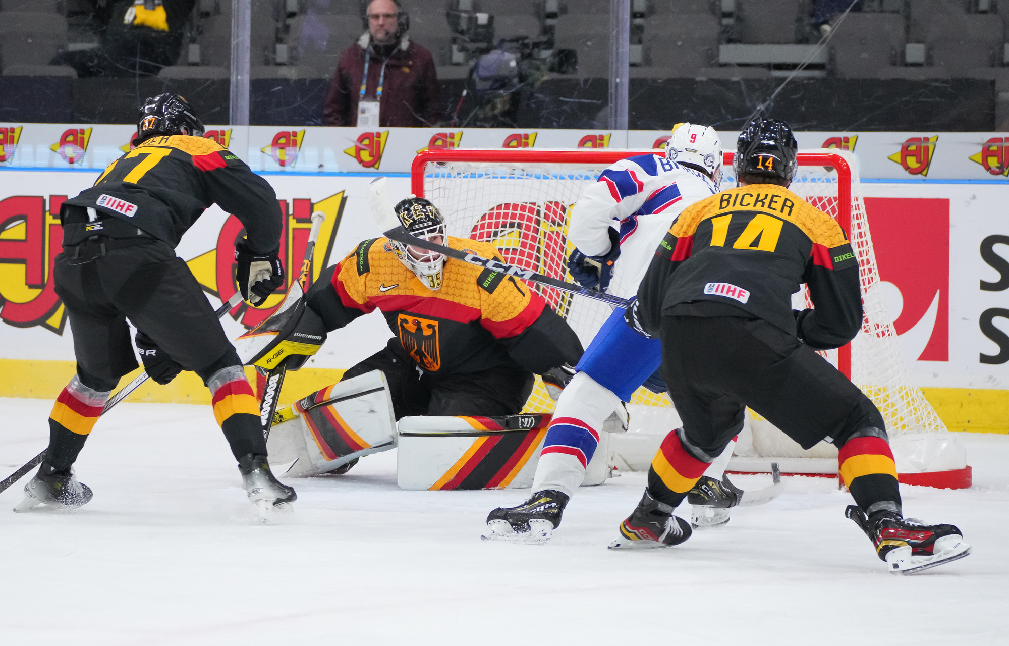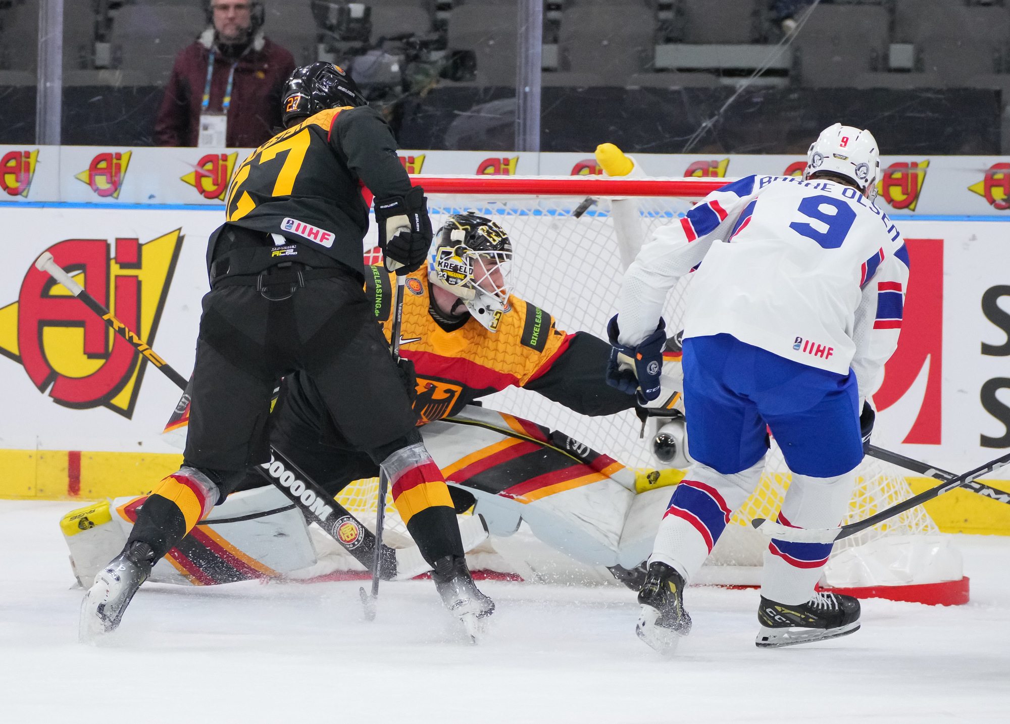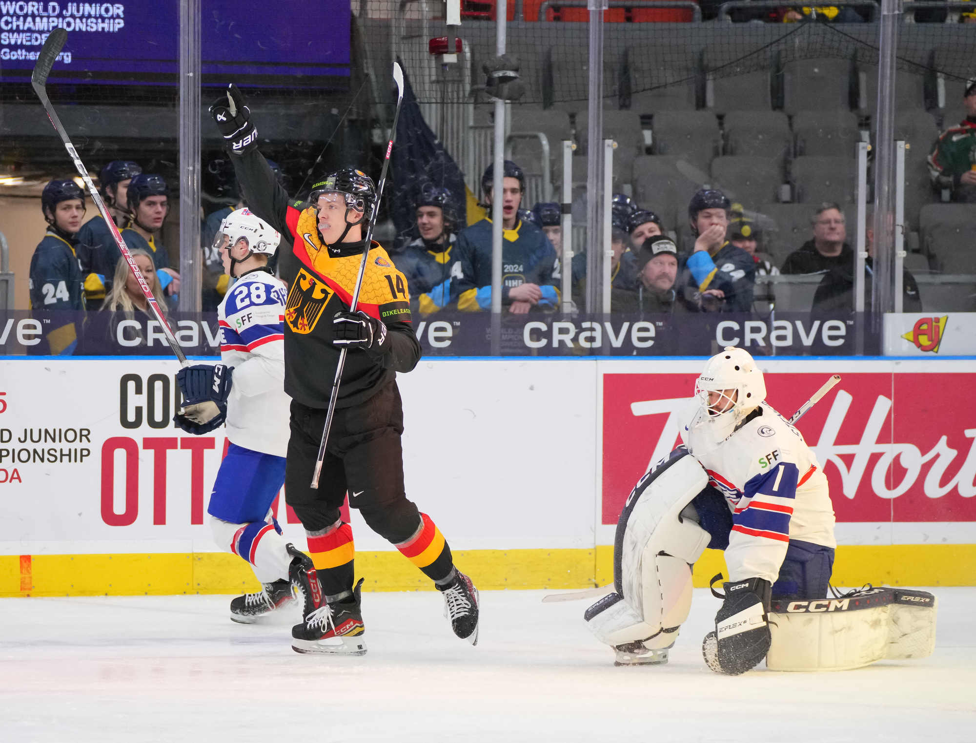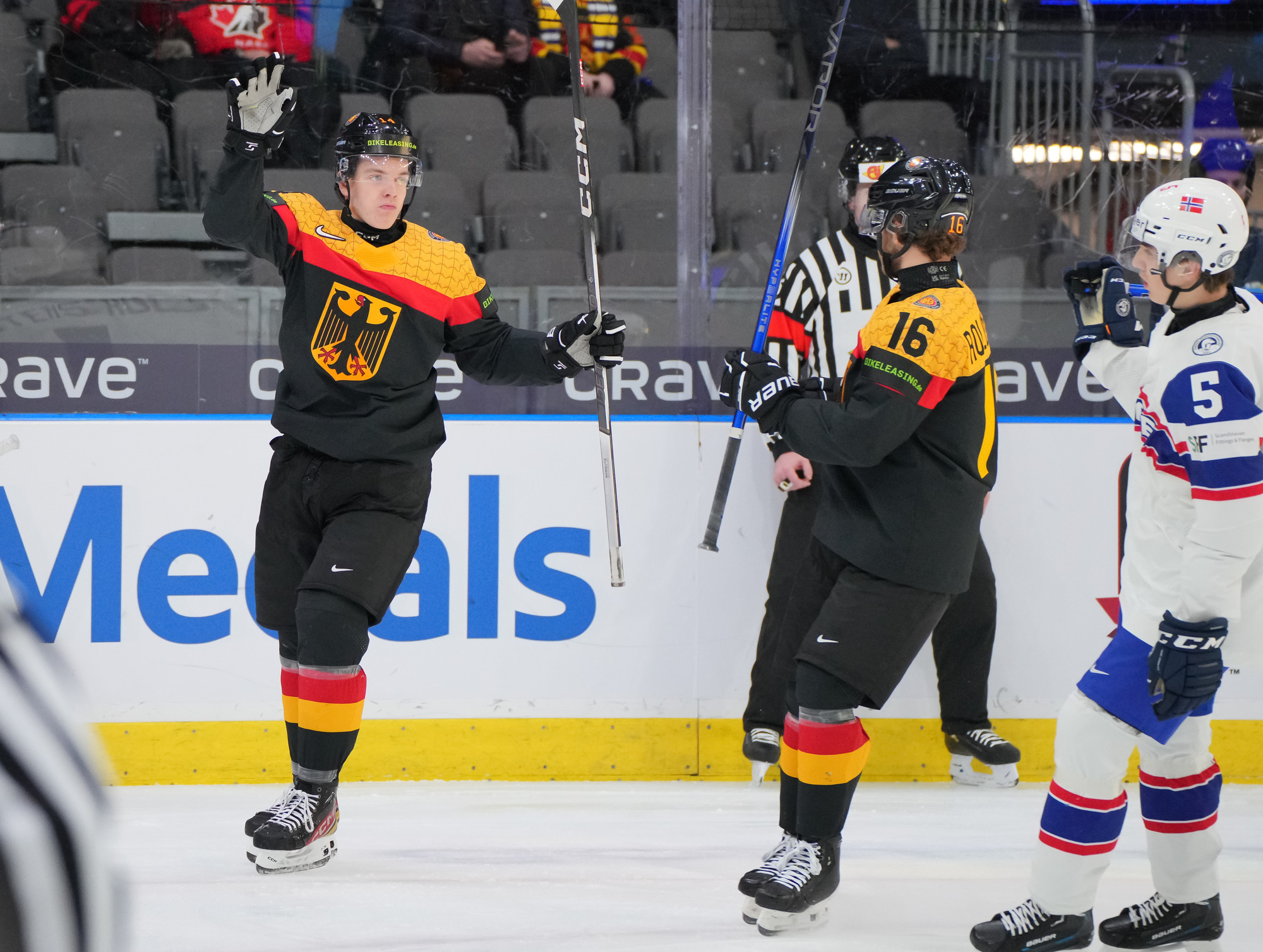 Norge spelade däremot ett bra försvarsspel och kunde kvittera efter en snabb spelsekvens av Noah Steen bakom Tysklands målbur. Han lade beslag på en lös puck och petade in den bakvägen innan Matthias Bittner kunde förflytta sig till den andra stolpen.