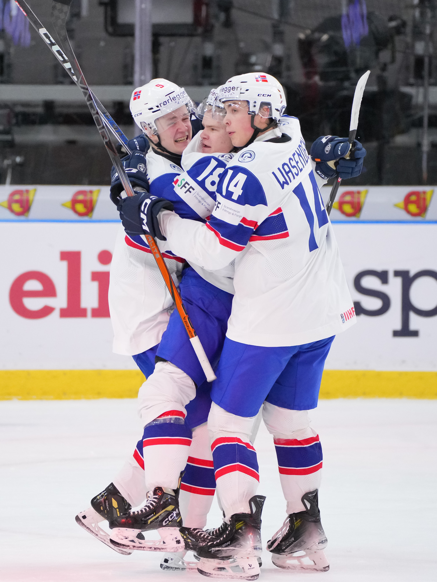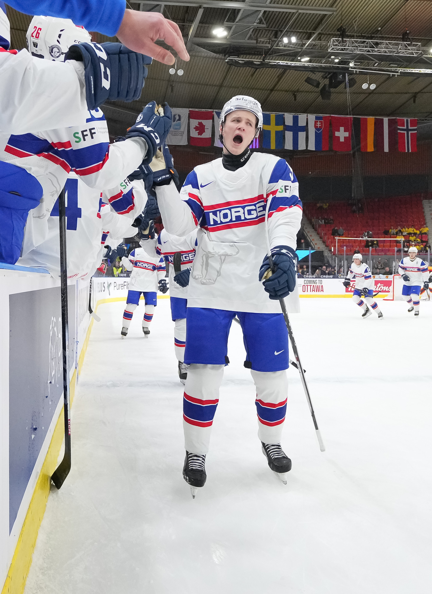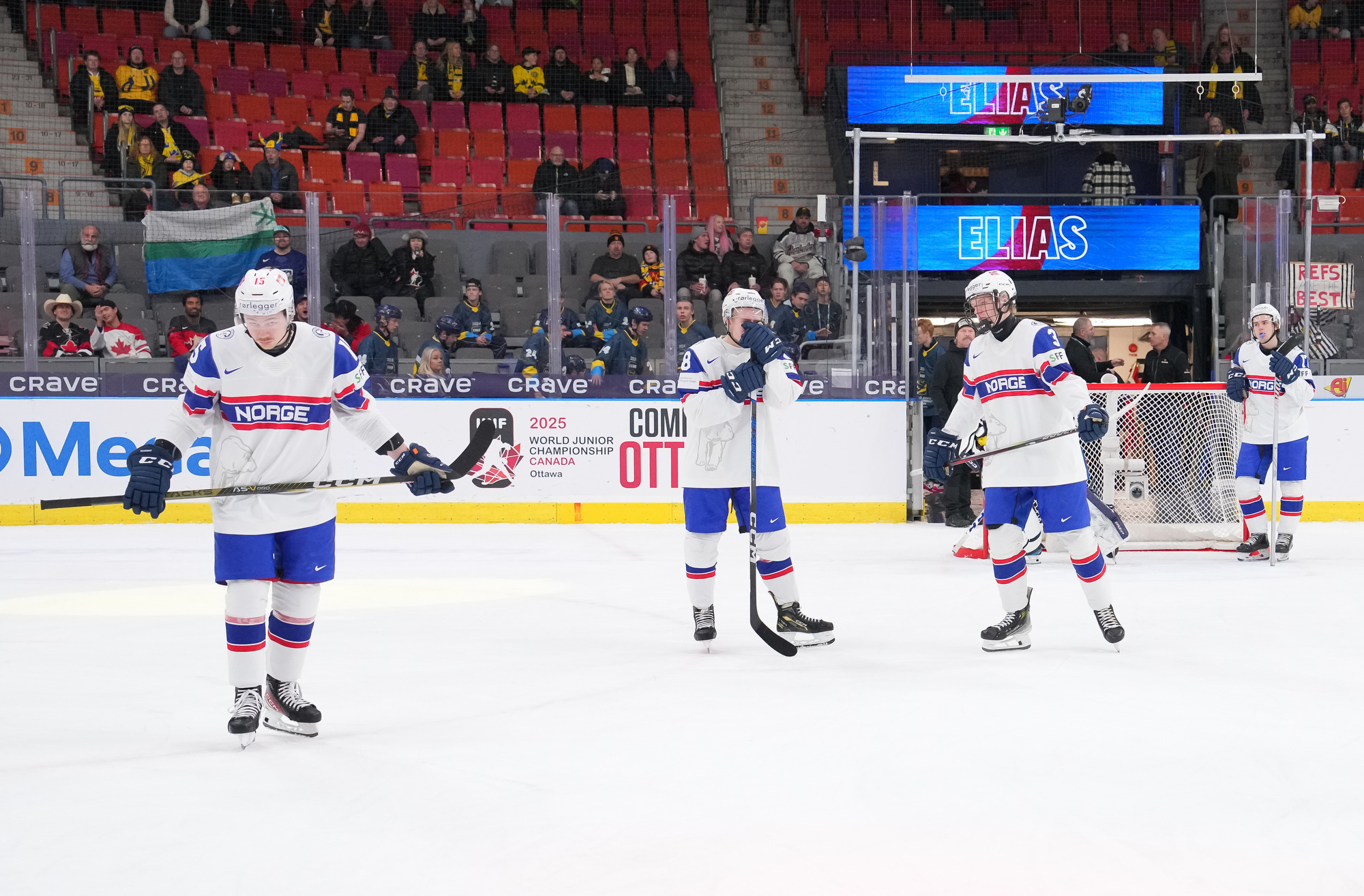 Norge fortsatte att kämpa. De fick till ett mål i numerärt överläge ett par minuter senare då Michael Brandsegg-Nygård avlossade ett direktskott som gick in vid 14:19. Mindre än två minuter senare kvitterade norrmännen efter mål från Bakke Olsen.