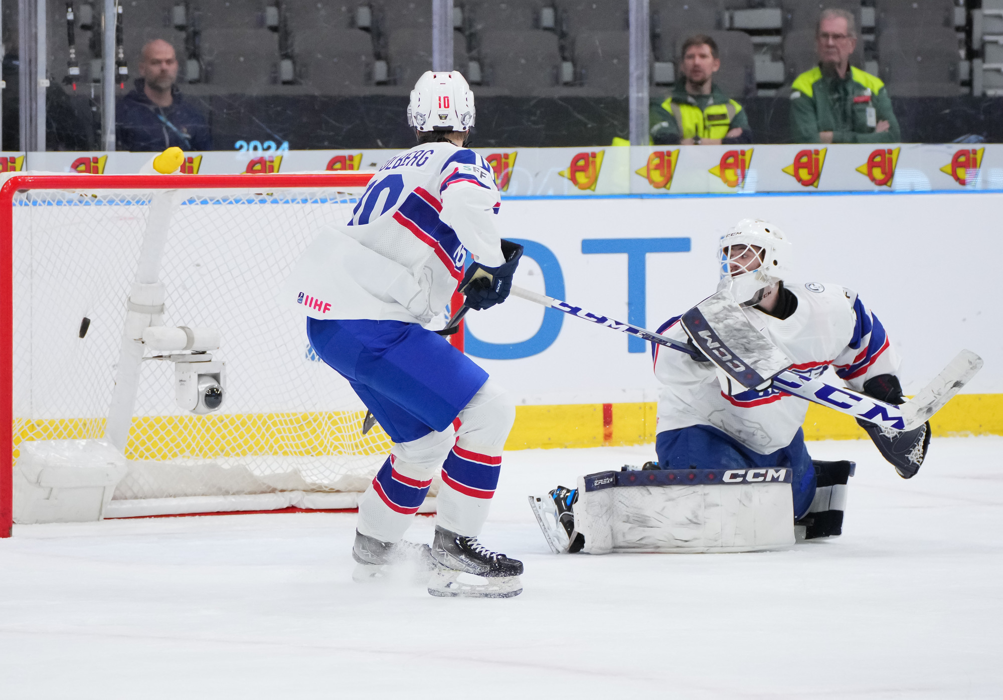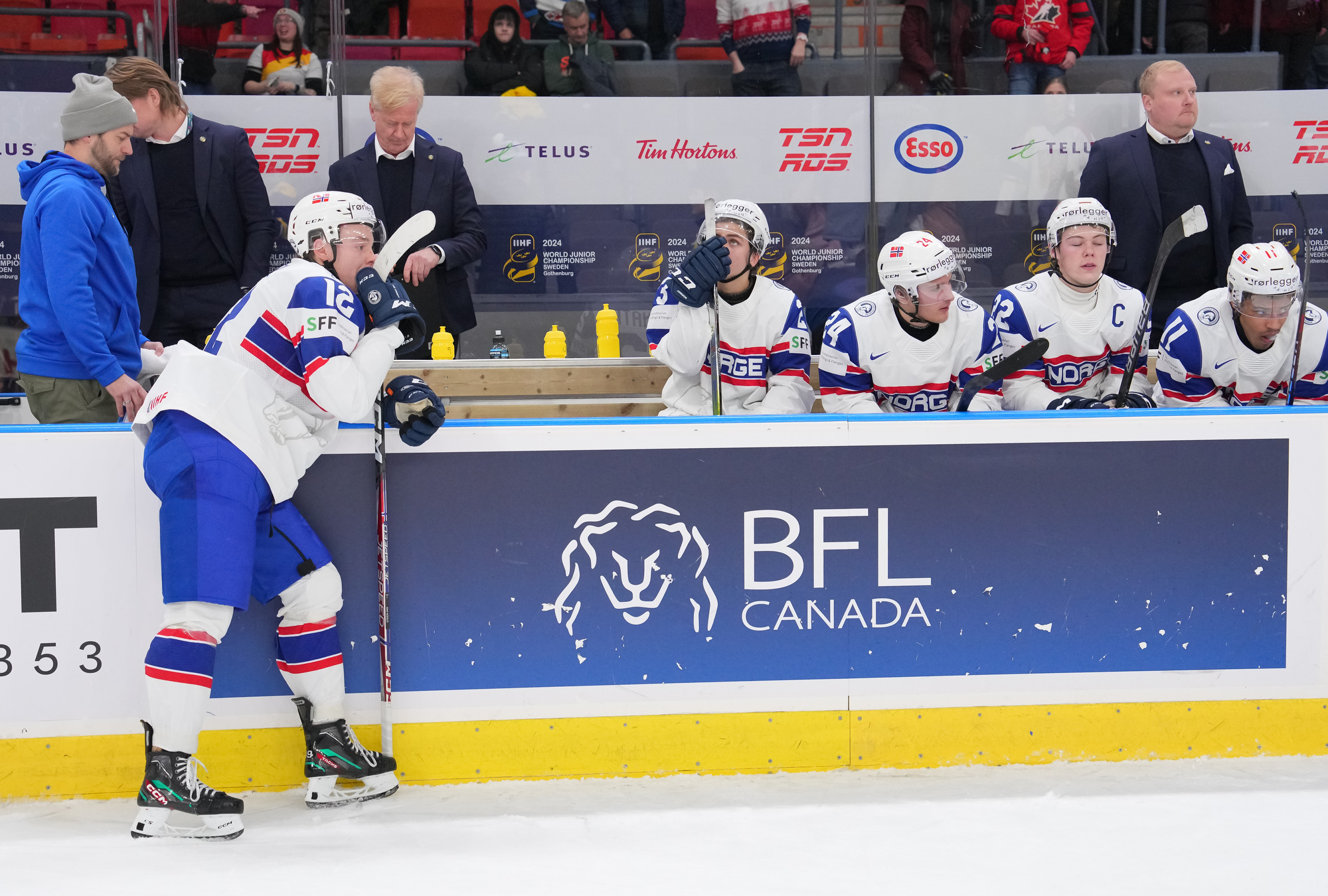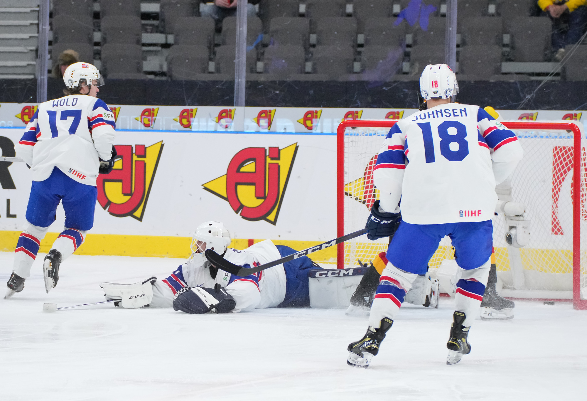 Norge fortsatte att kämpa. De fick till ett mål i numerärt överläge ett par minuter senare då Michael Brandsegg-Nygård avlossade ett direktskott som gick in vid 14:19. Mindre än två minuter senare kvitterade norrmännen efter mål från Bakke Olsen.