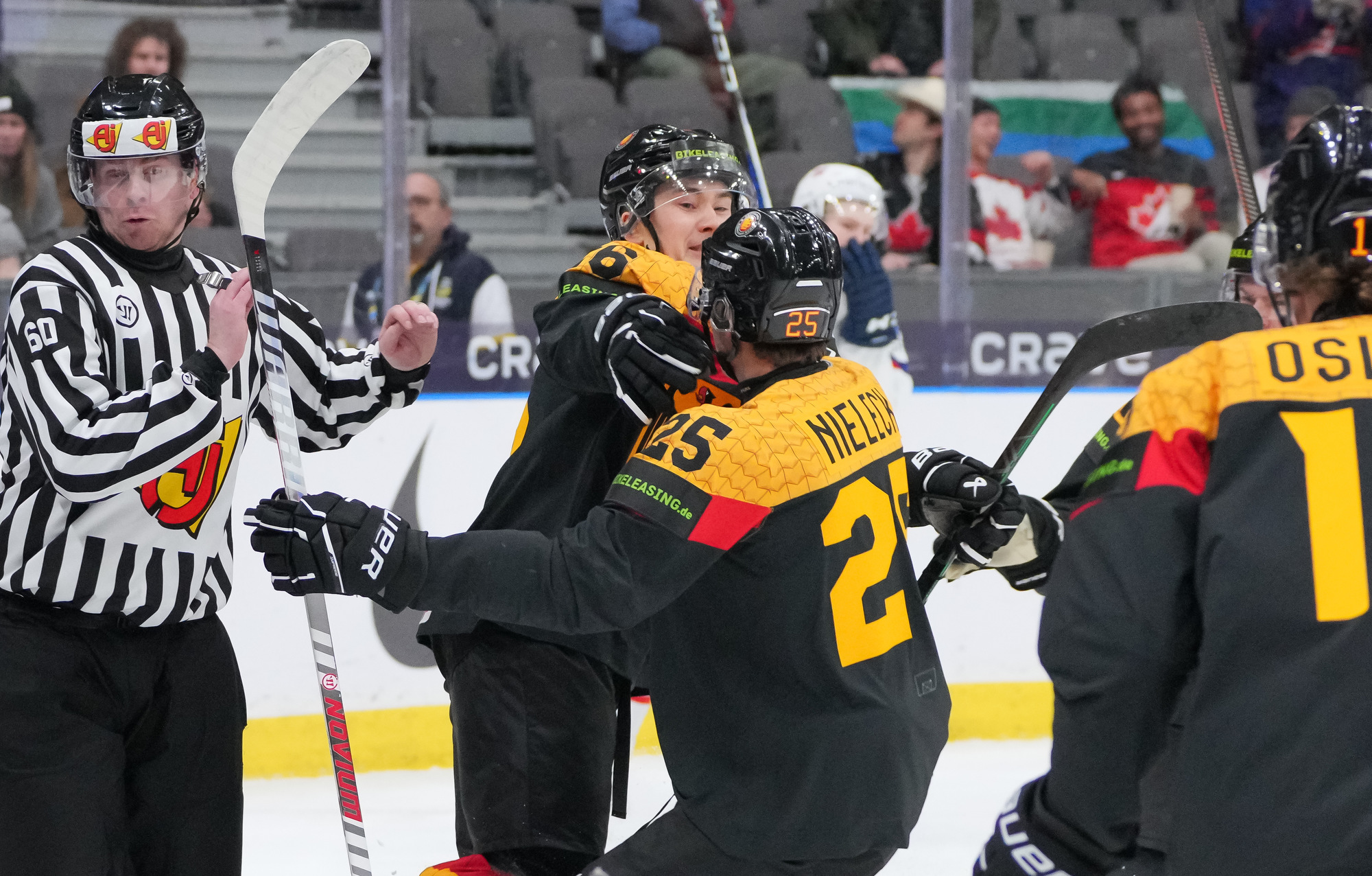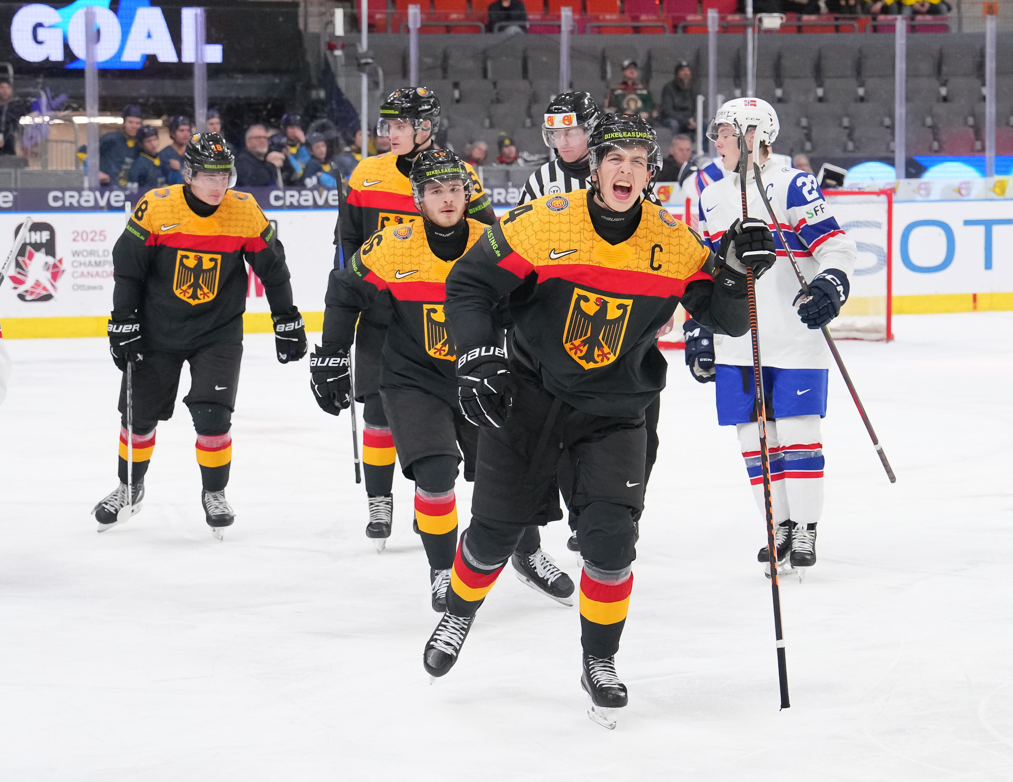 Germany celebrates its dramatic overtime vicotry over Norway to stay in the top pool for 2025.