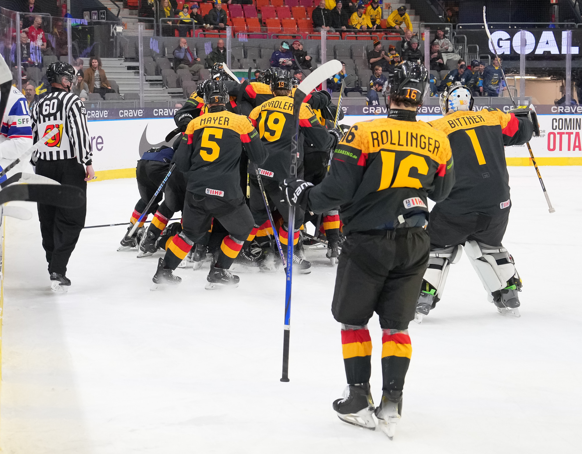 Vinsten garanterar tyskarna en plats i Ottawa nästa år medan Norge, som blev uppflyttade till den högsta divisionen inför årets turnering för första gången på ett decennium, har blivit nedflyttade återigen. De har spelat i den högsta divisionen enbart tre gånger sedan 2006.