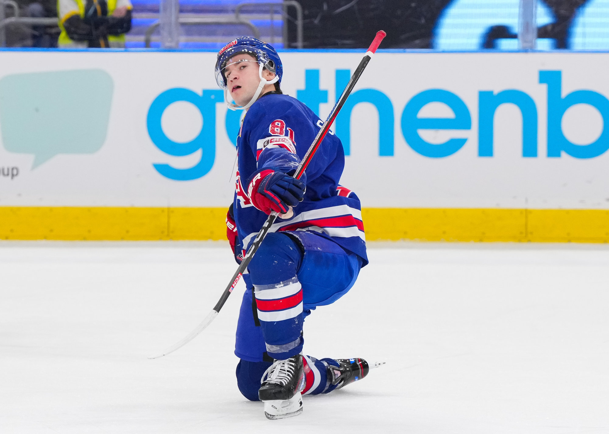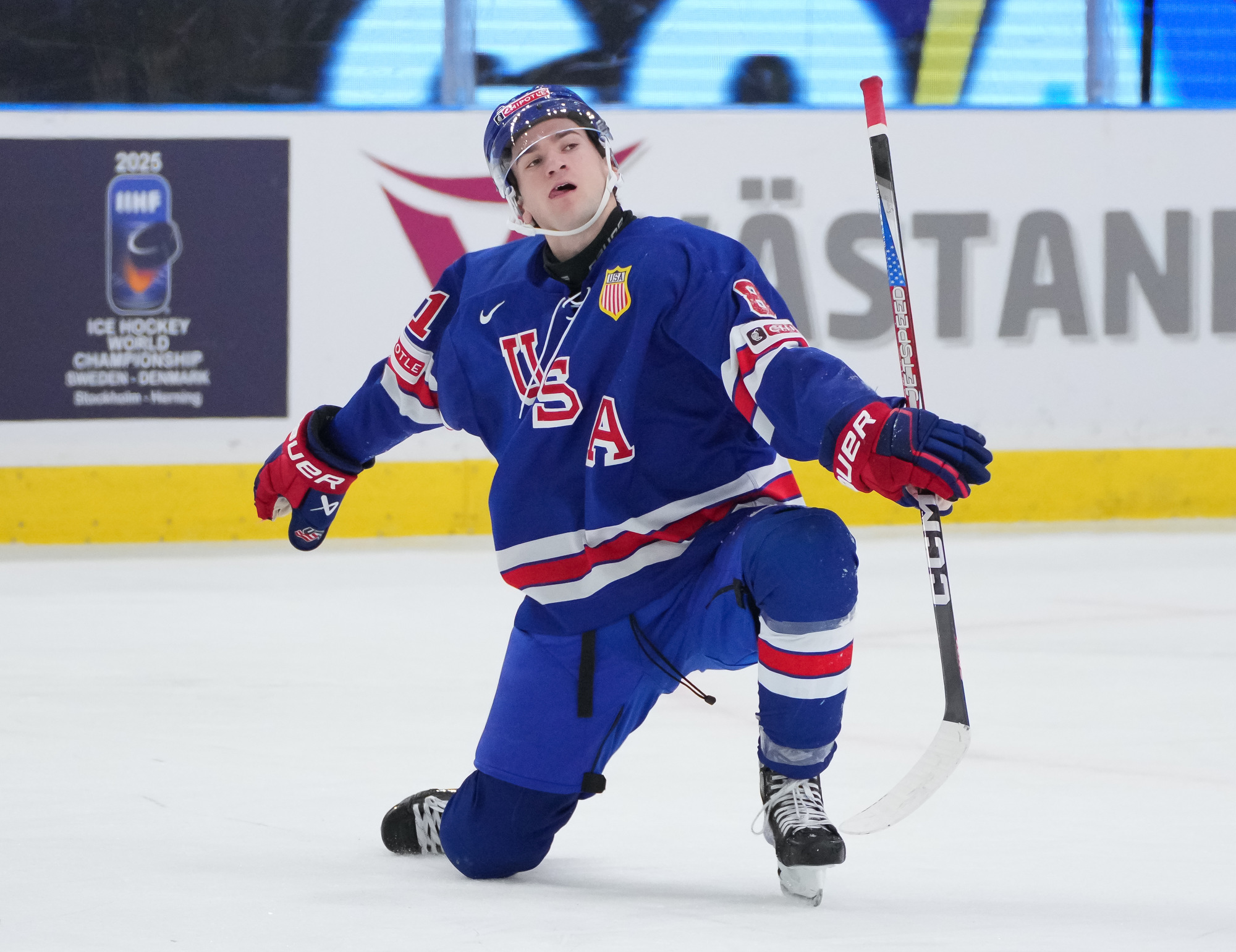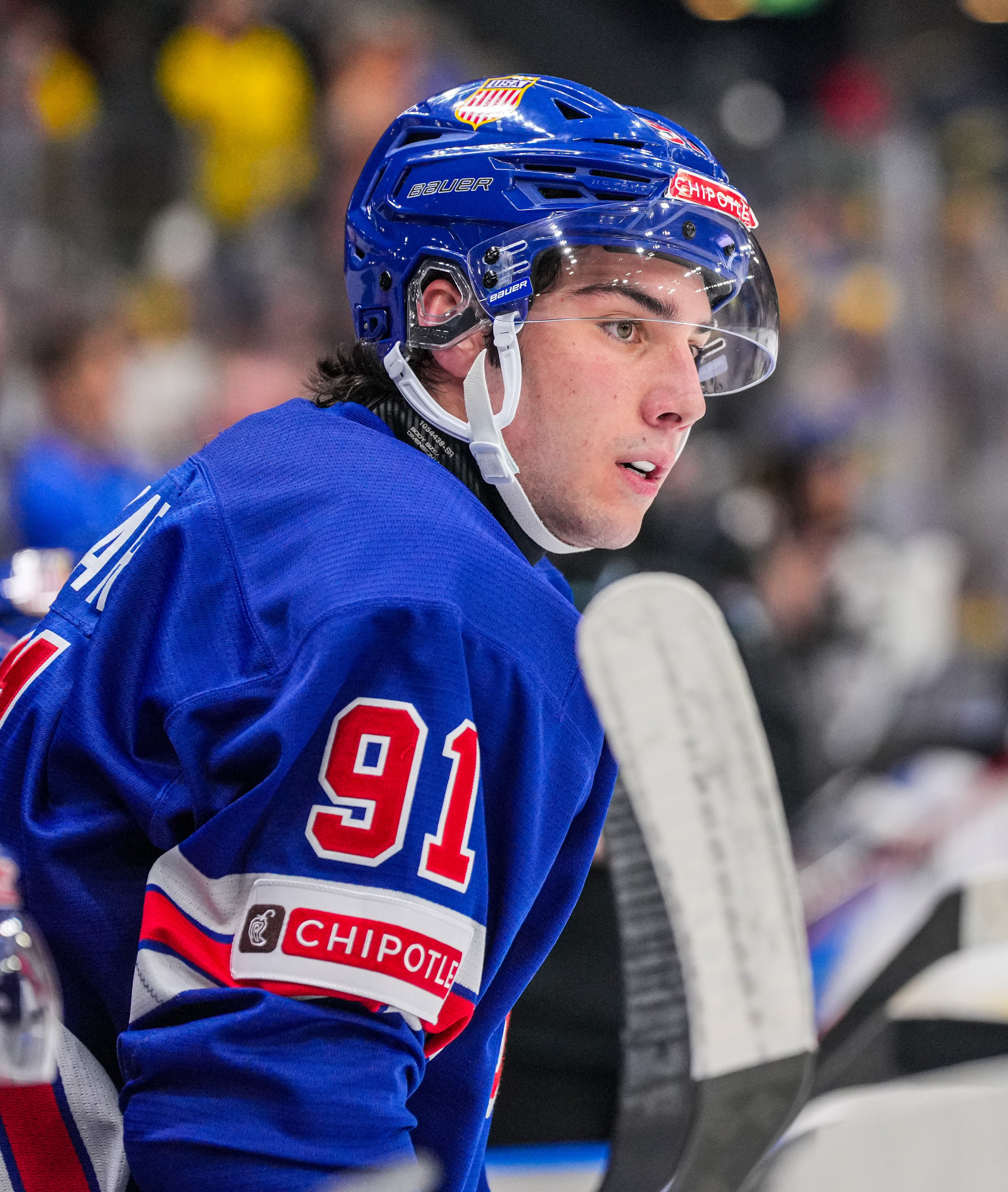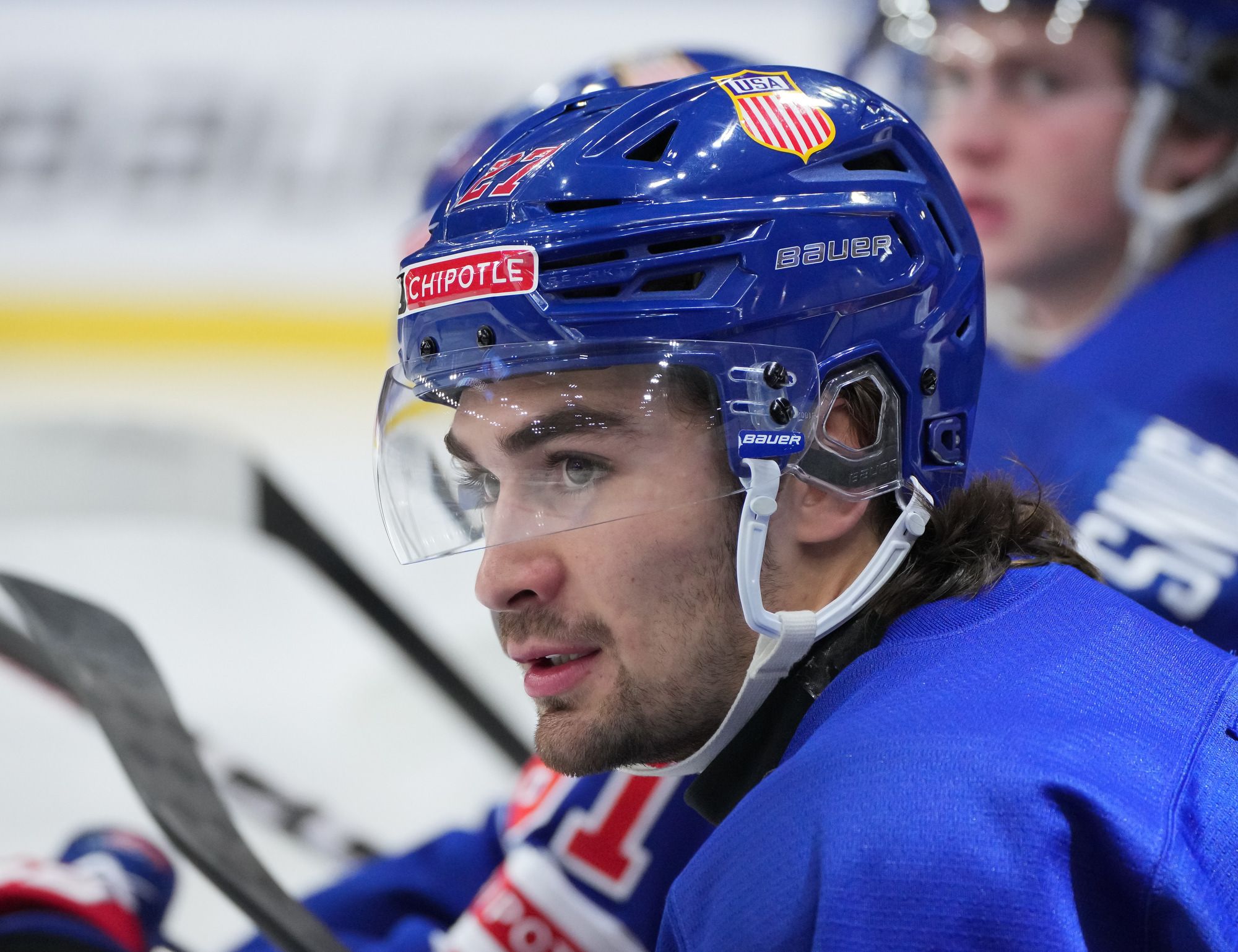 Quinn Finley, Will Smith, and Oliver Moore all had great chances to score in the first half of the period but couldn’t beat Kokko, who was sharp. But when the Americans got their first power play, they clicked in impressive fashion. Jimmy Snuggerud blasted a one-timer over the goalies’ glove at 12:10 to halve the lead, and four minutes later one of many defensive lapses by the Finns gave the U.S. another opening.