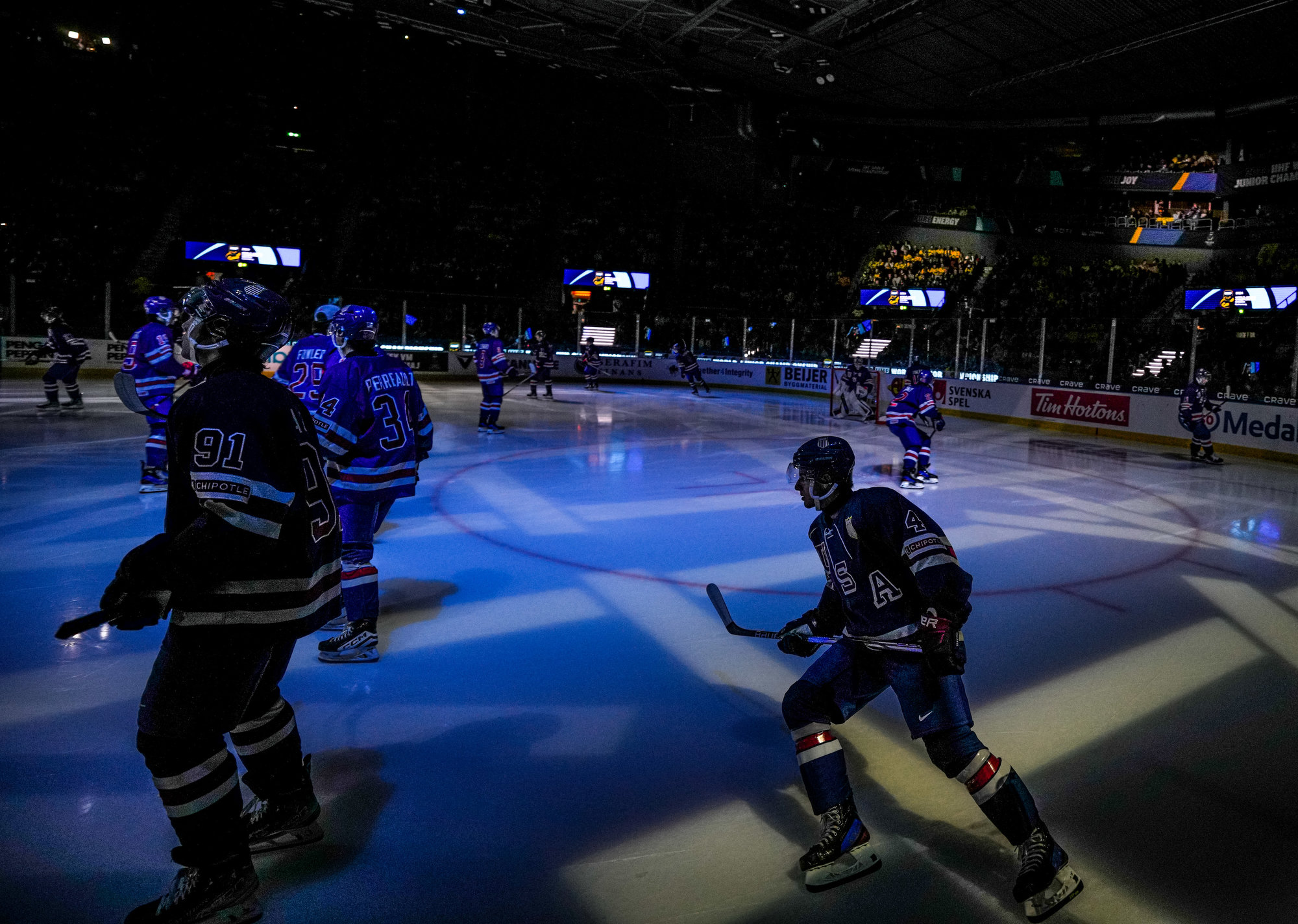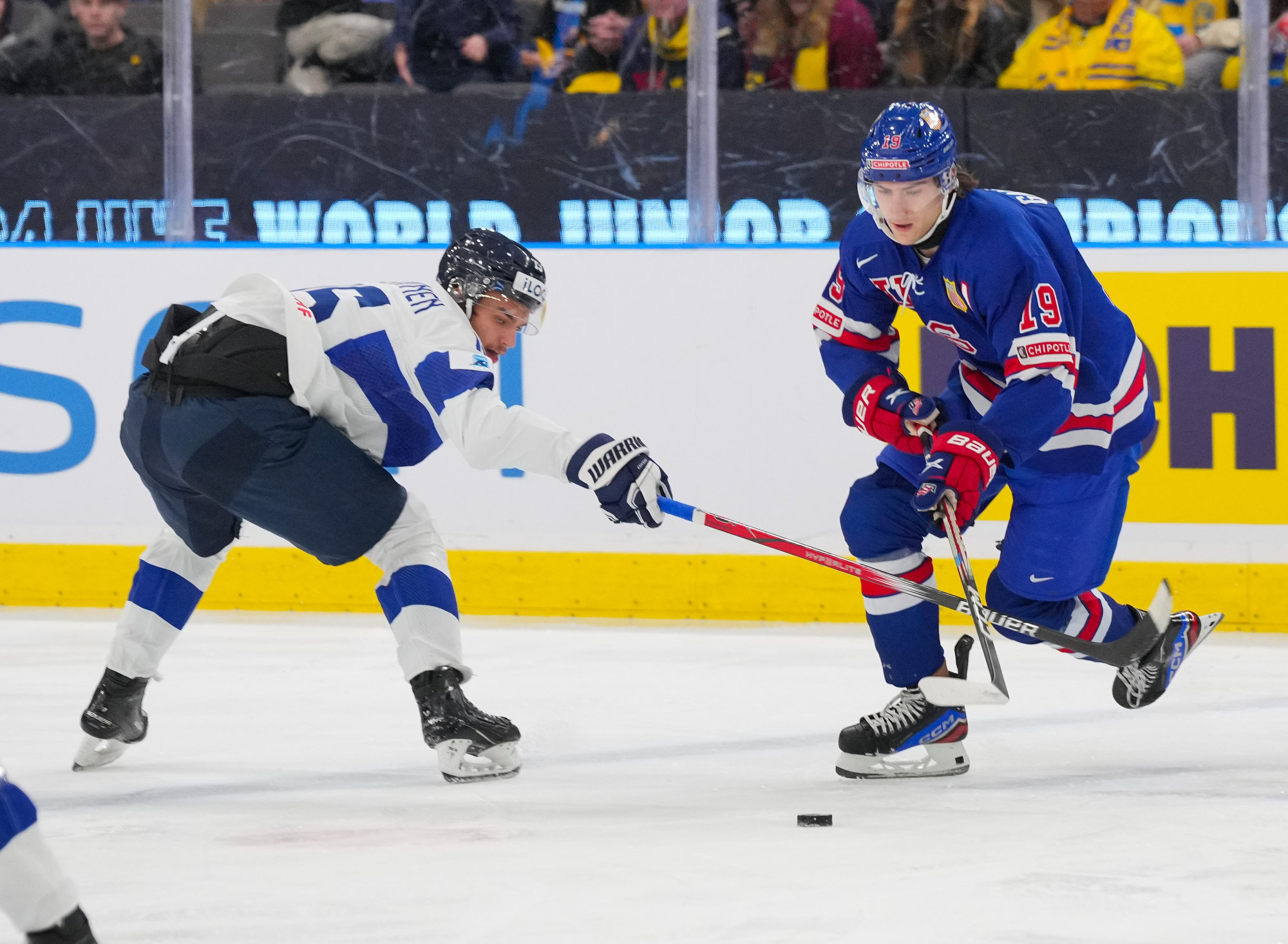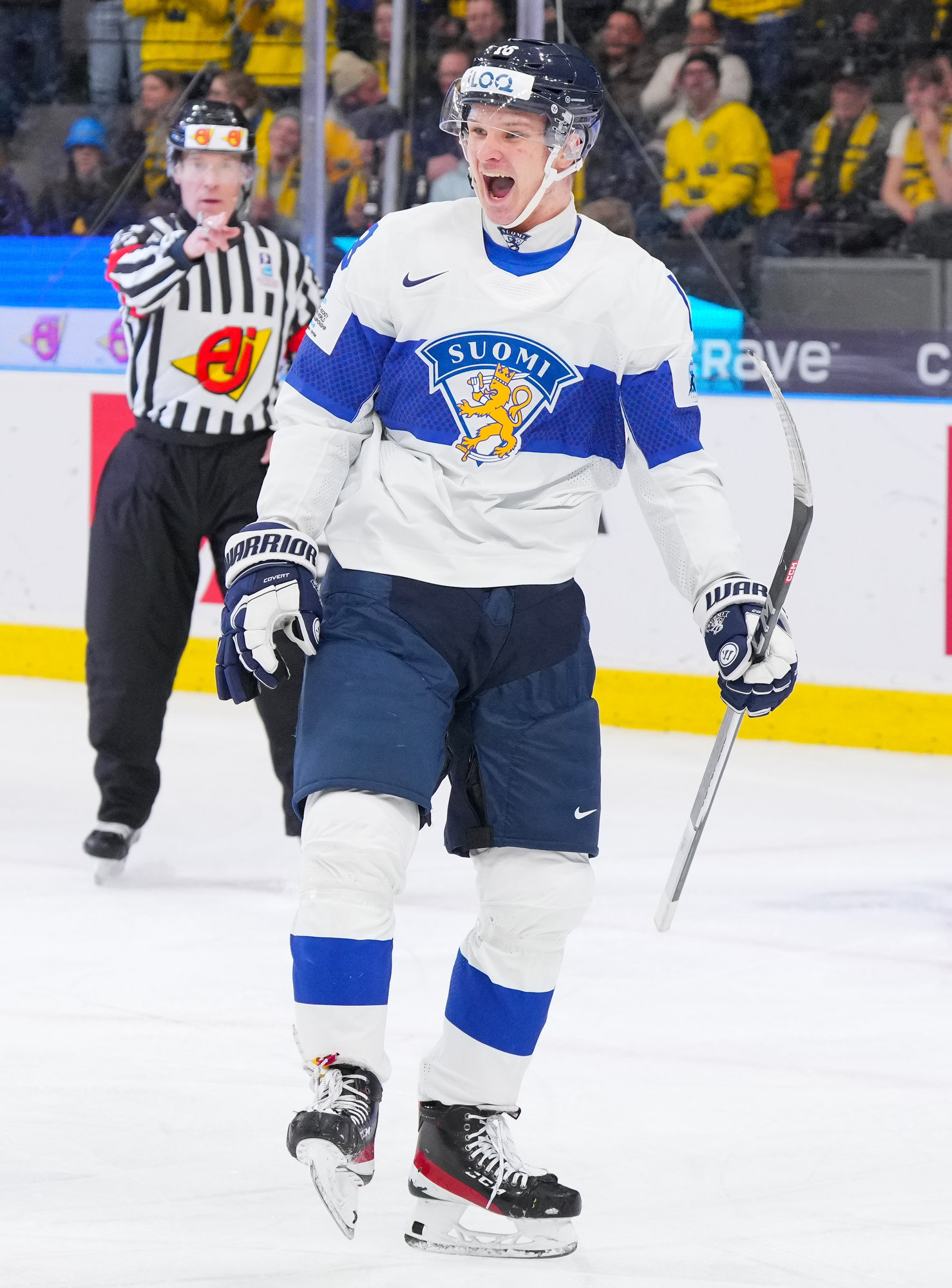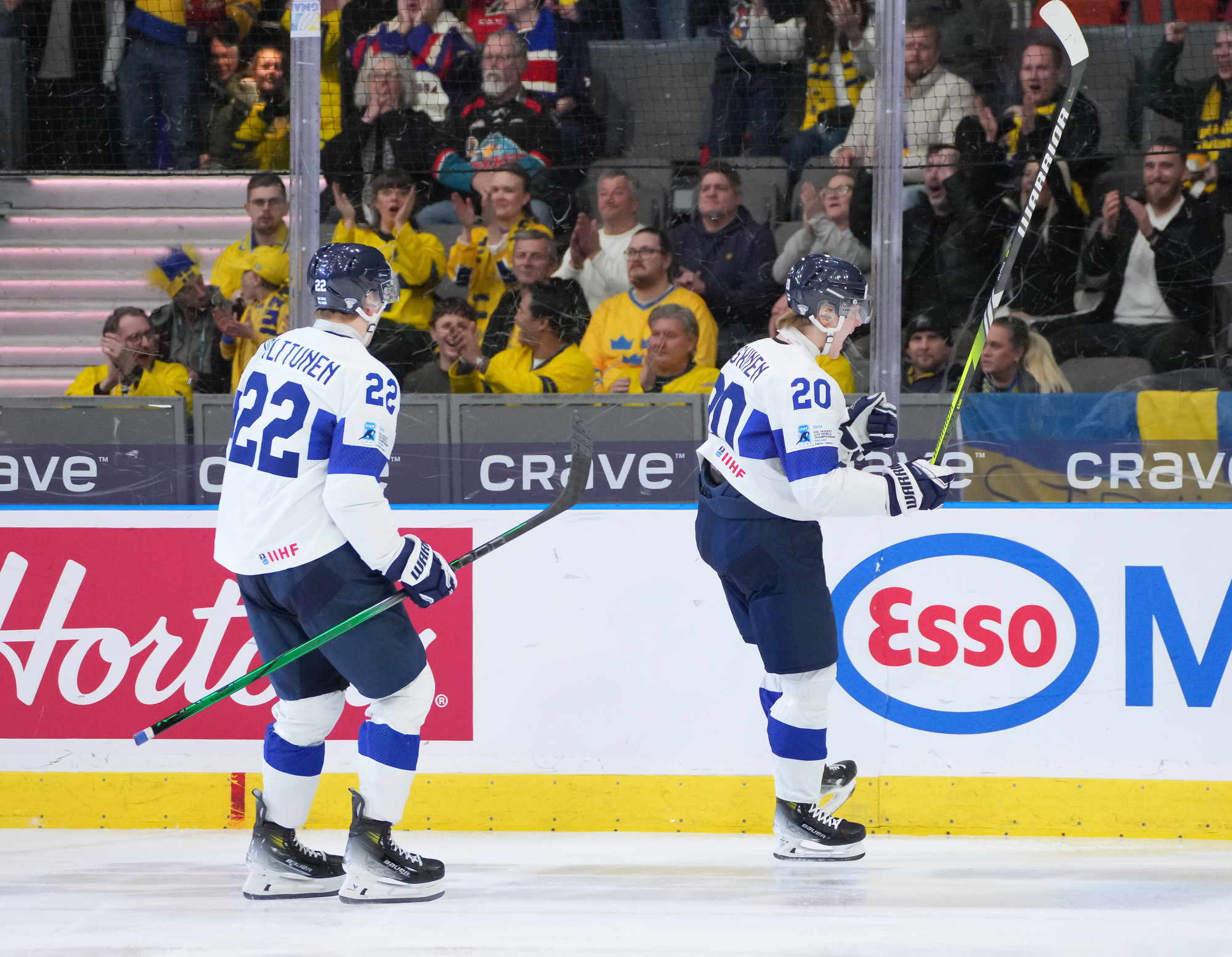 Gauthier skickade iväg ett högt skott över handsken på Niklas Kokko med bara 3:13 kvar under ordinarie speltid. Finländarna ledde 2–0 efter första perioden men tappade ledningen halvvägs genom matchen.