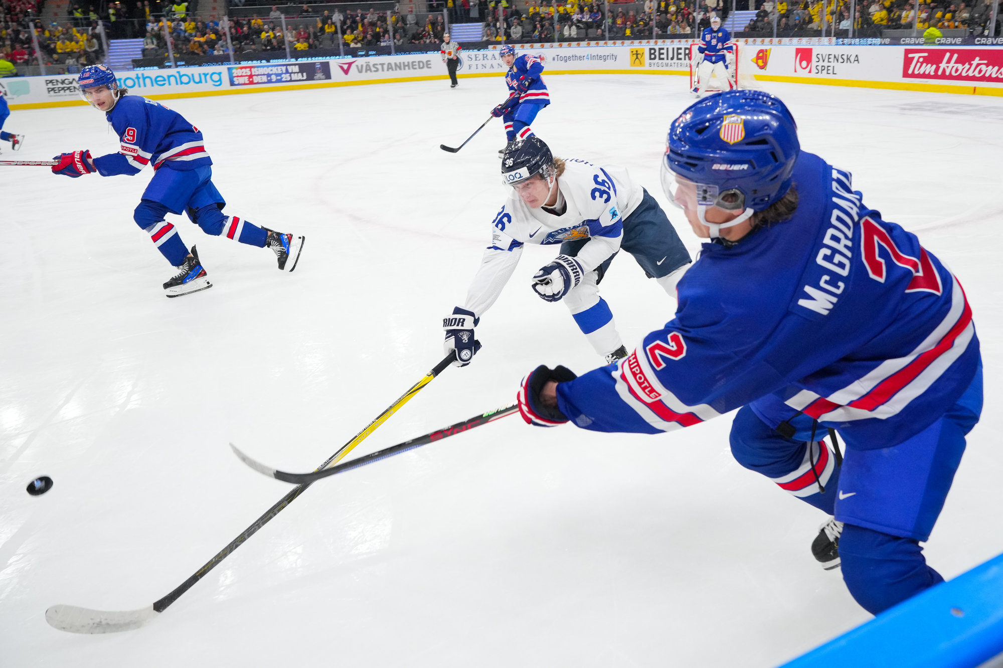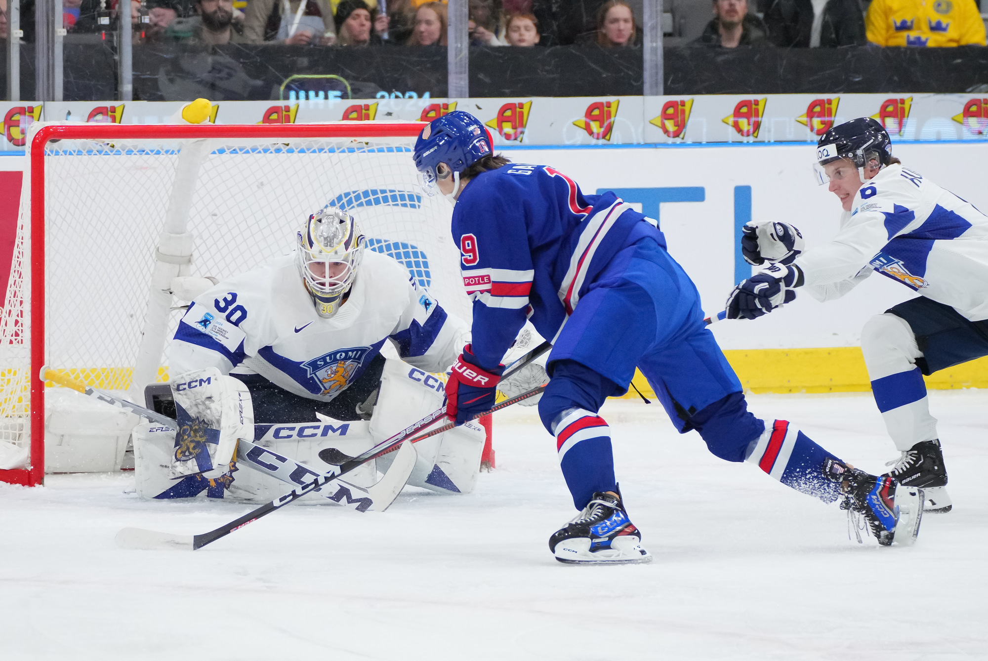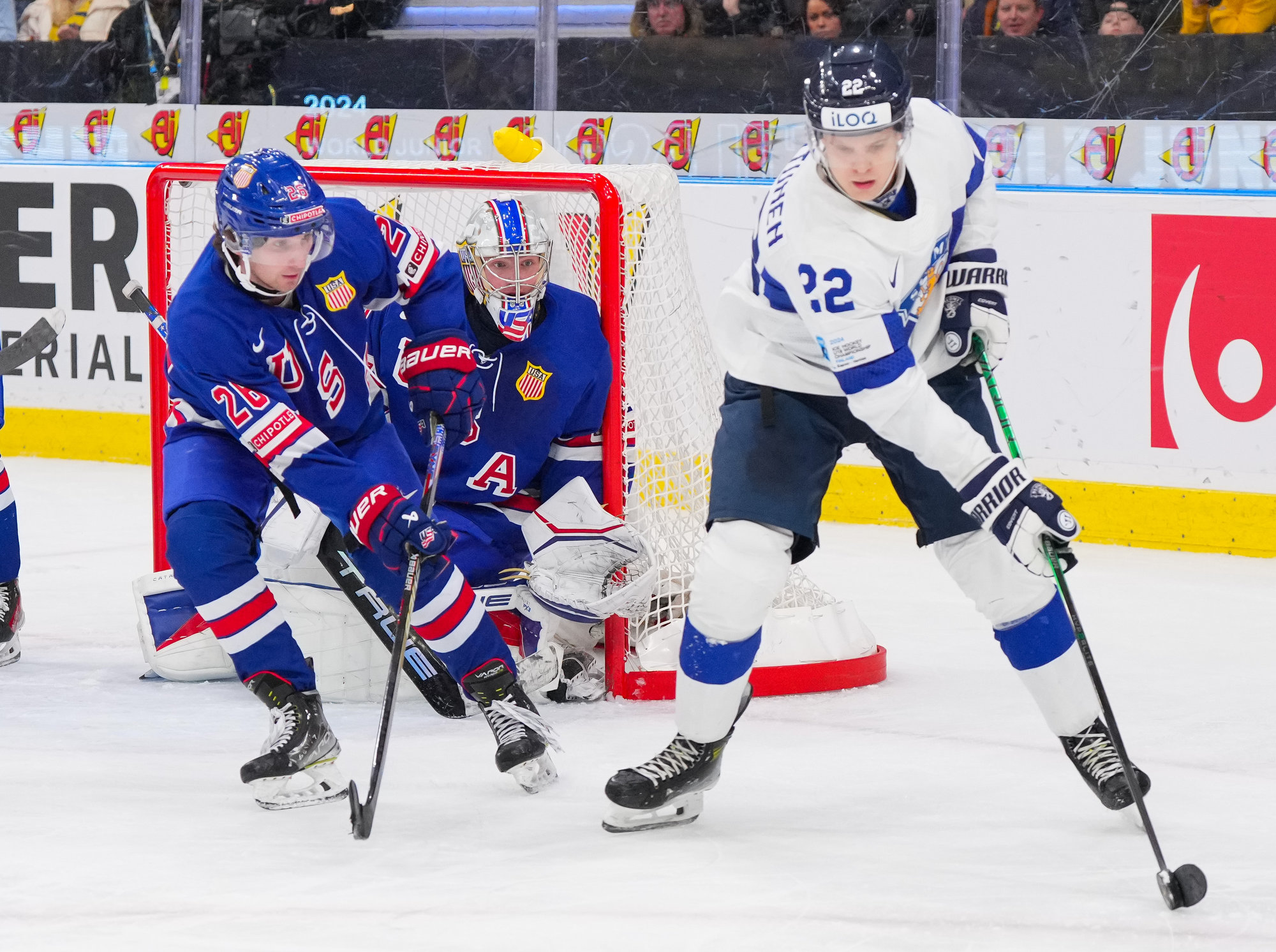 Gabe Perreault spotted Smith to the back side and fed him a perfect pass, and the puck was in the net before Kokko knew what had happened. By this point, the Finns were lucky to be in a 2-2 game after 40 minutes. The only question left for the third was whether the U.S. could keep it going or whether the Finns could right the boat.