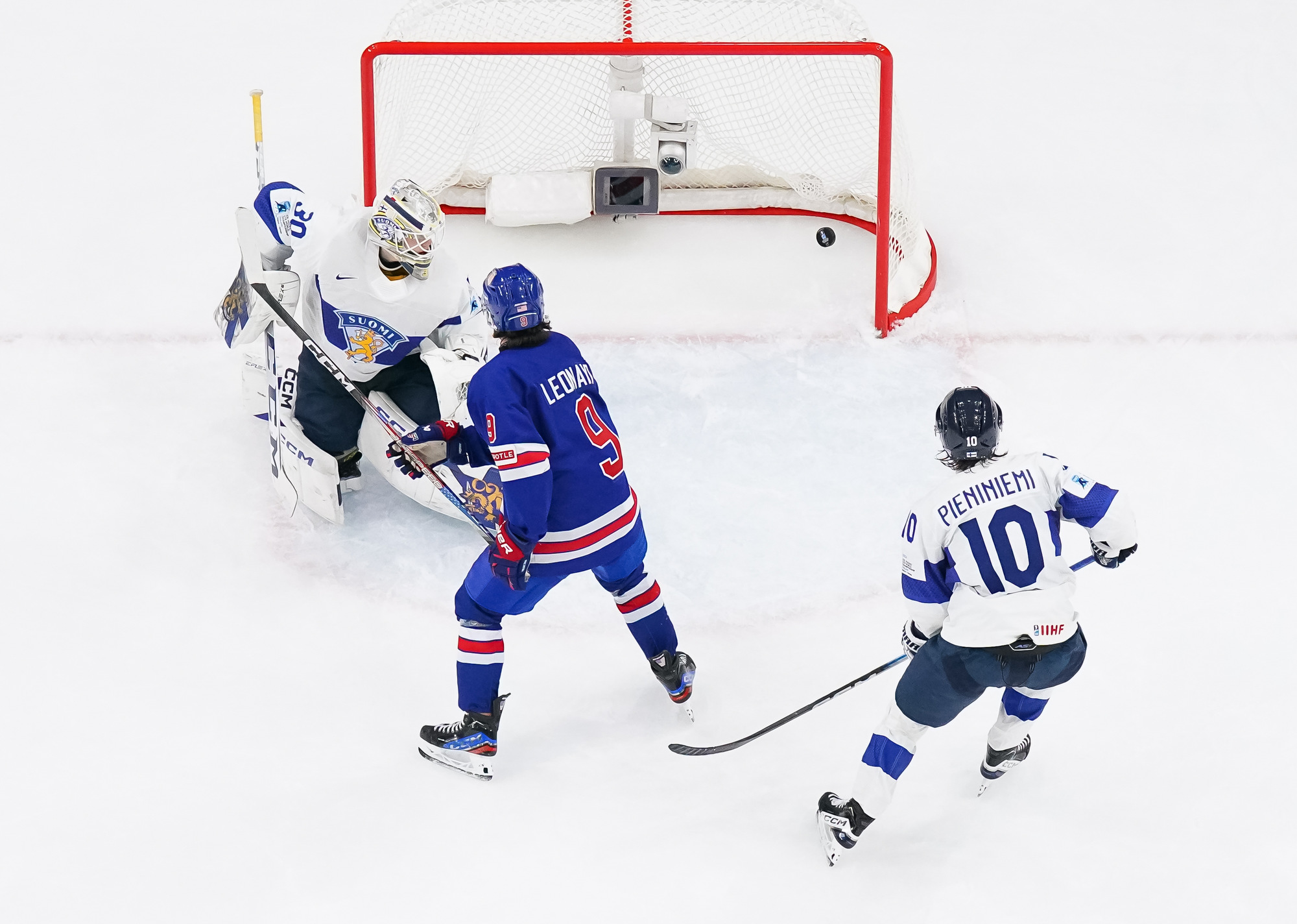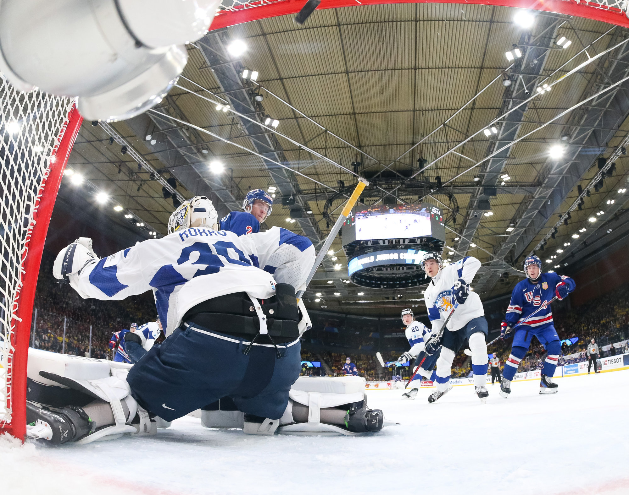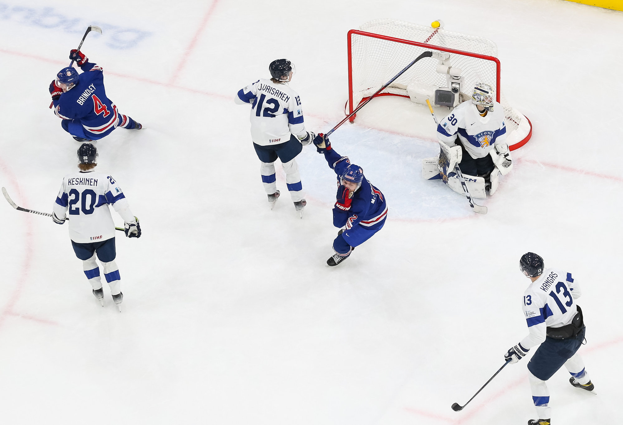 Finländarna höll det enkelt och chippade bort pucken vid första tecken på problem eller chippade in den djupt och jagade efter den. De skapade flera turnovers i USA:s ände, och den värsta av dem alla kunde de se till att få sitt öppningsmål via.