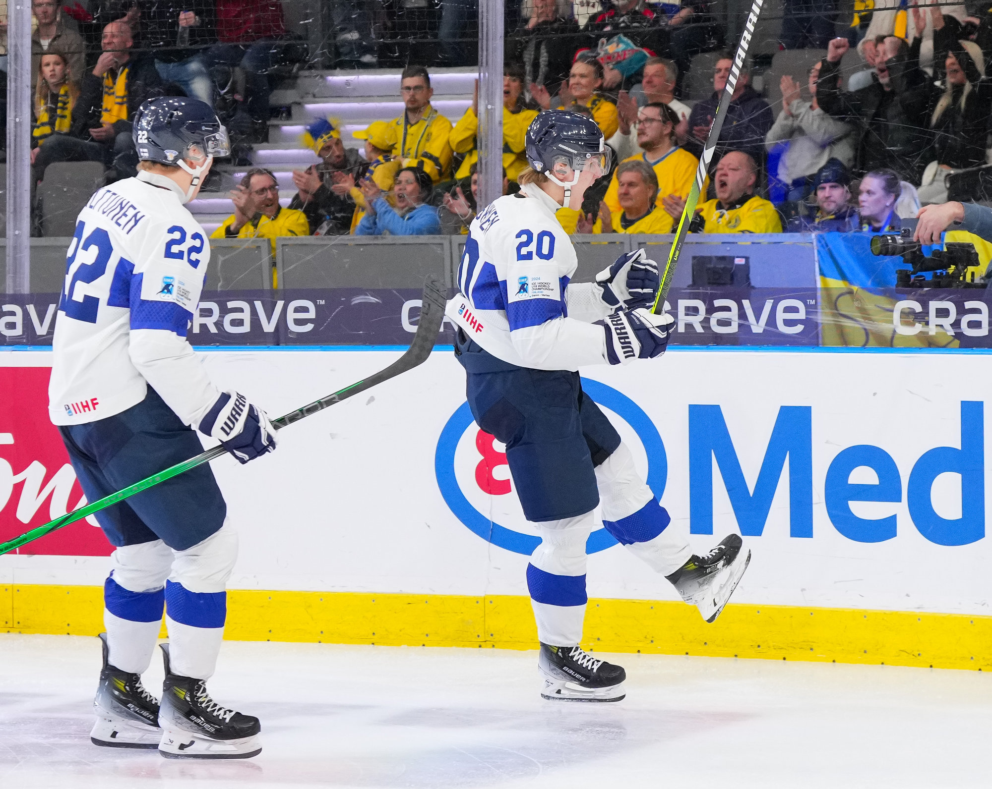 En annan oväntad attack gav Finland en 2–0-ledning vid 12:45. Samu Baus harmlösa handledsskott från blålinjen styrdes in via Rasmus Kumpulainen framför nät mellan benen på burväktaren.